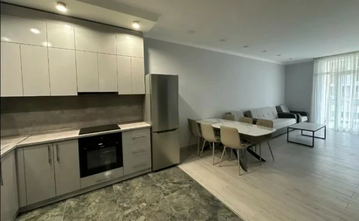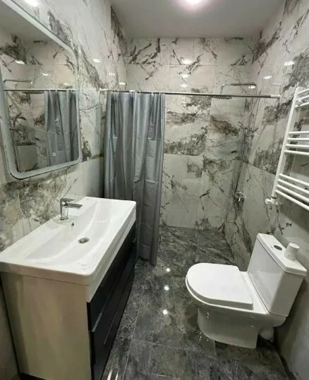 An apartment is for rent in a newly built building at 2/9 Shiraz Street, on the 3rd floor. The apartment is 67 sq m. It has 3 rooms (living room and 2 bedrooms) and a balcony. The apartment is fully renovated, equipped with new furniture and new household appliances (gas, dishwasher, gas stove, oven, refrigerator, microwave, air conditioner, heating system). All conditions for living are available.