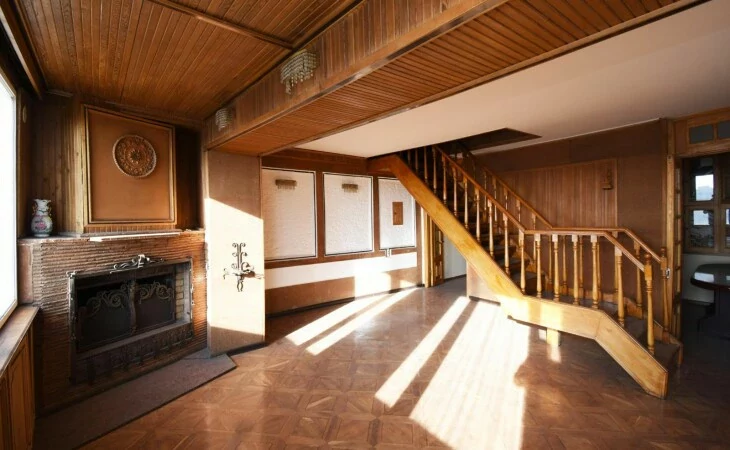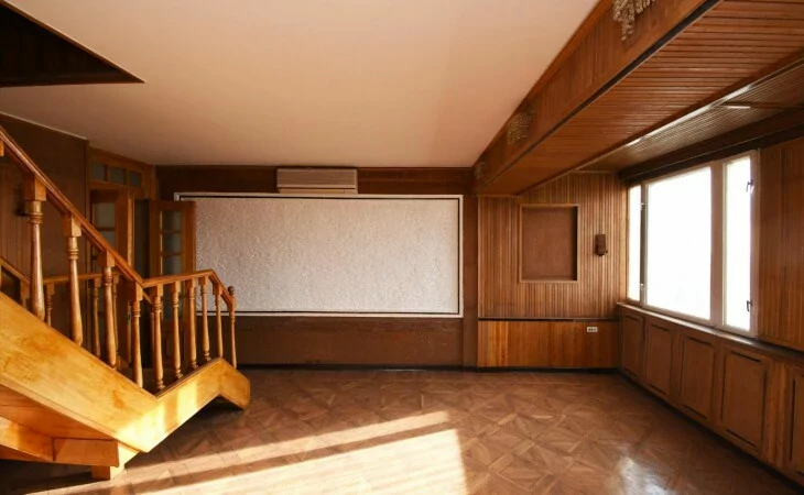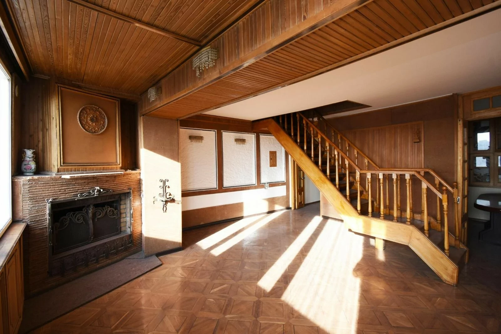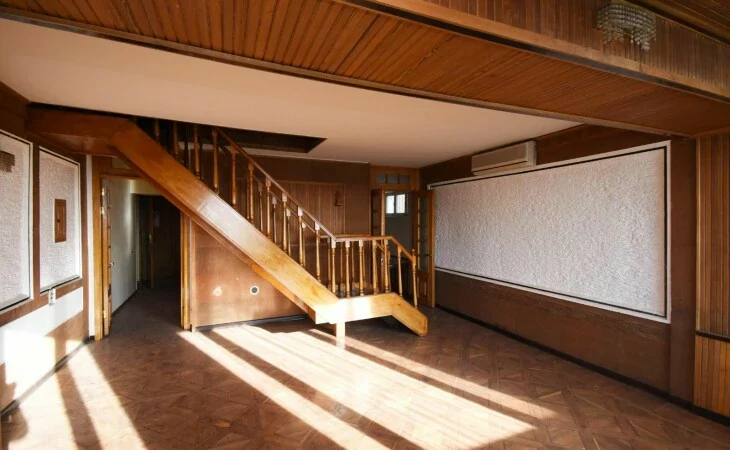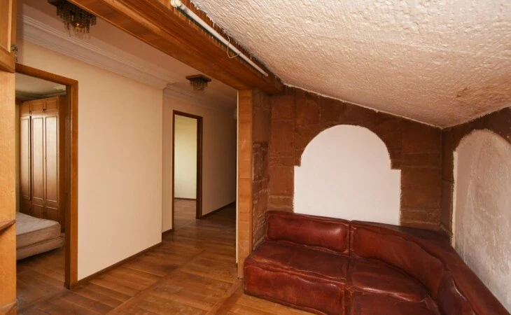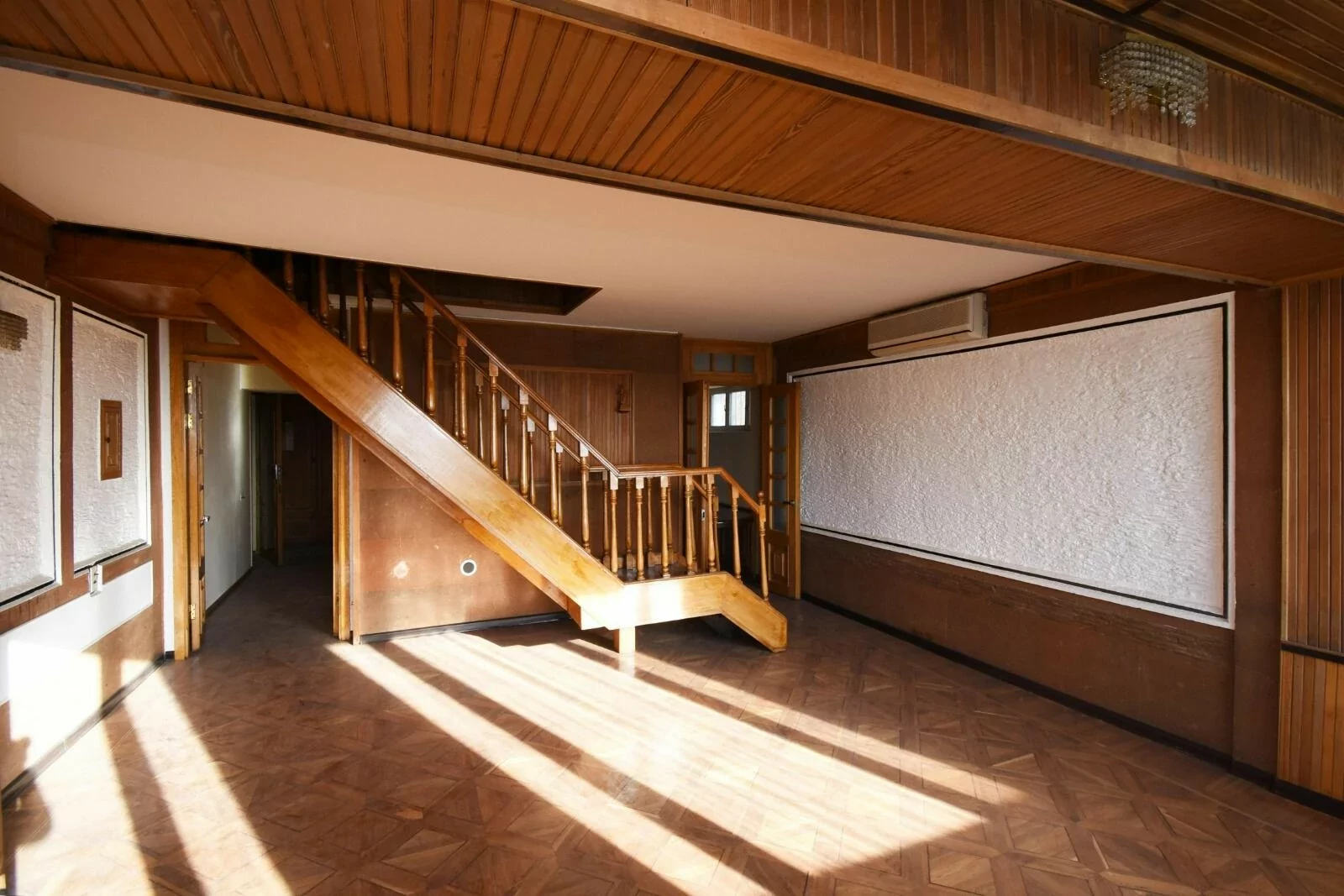 A spacious duplex apartment with a total area of 154 square meters is for sale on the 5th and 6th floors of a stone building. All utilities are available.