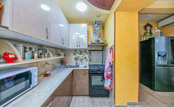For sale 3-room, fully renovated apartment near Yerevan City. The apartment is located on the 2nd floor of a 5-story stone building. It is fully renovated, all utilities are available. The price also includes a stone-based garage.
