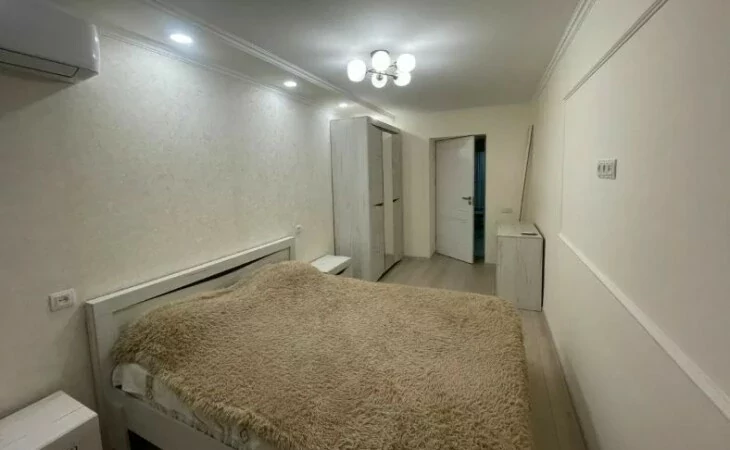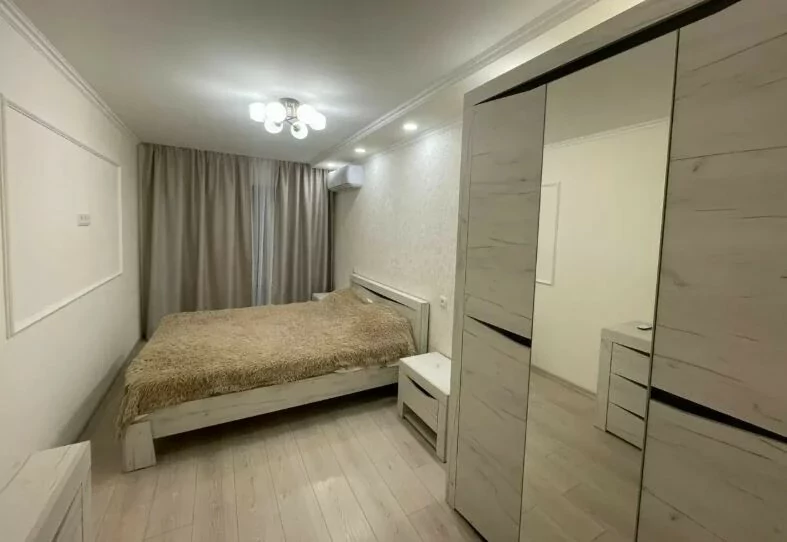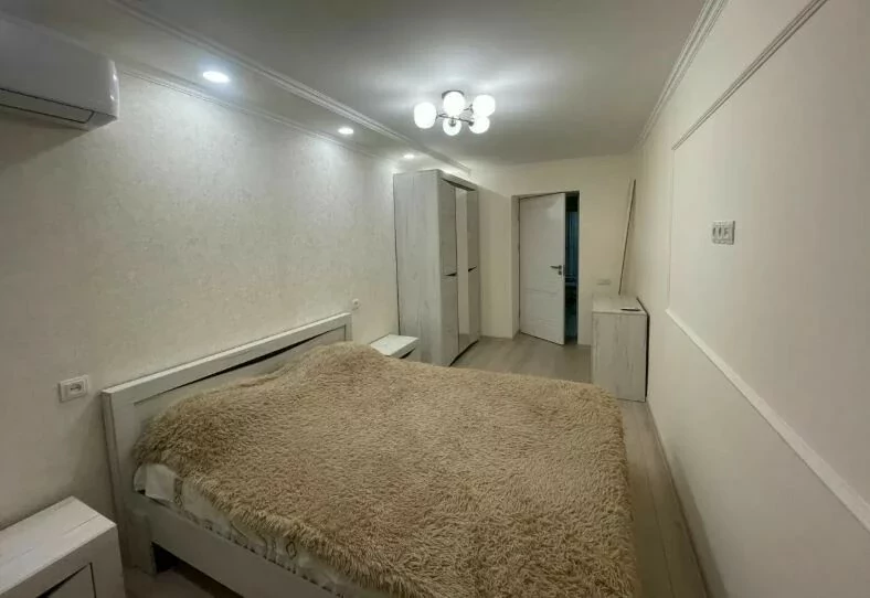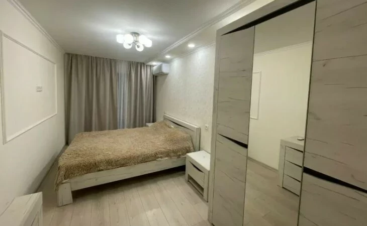 A comfortable and bright 3-room apartment is for sale. The apartment is fully furnished with new furniture and is equipped with all the necessary household appliances: washing machine, refrigerator, stove, air conditioner and internet. The renovation was done with high quality, the ceiling height is 2.8 m. It is located on the 4th floor.
