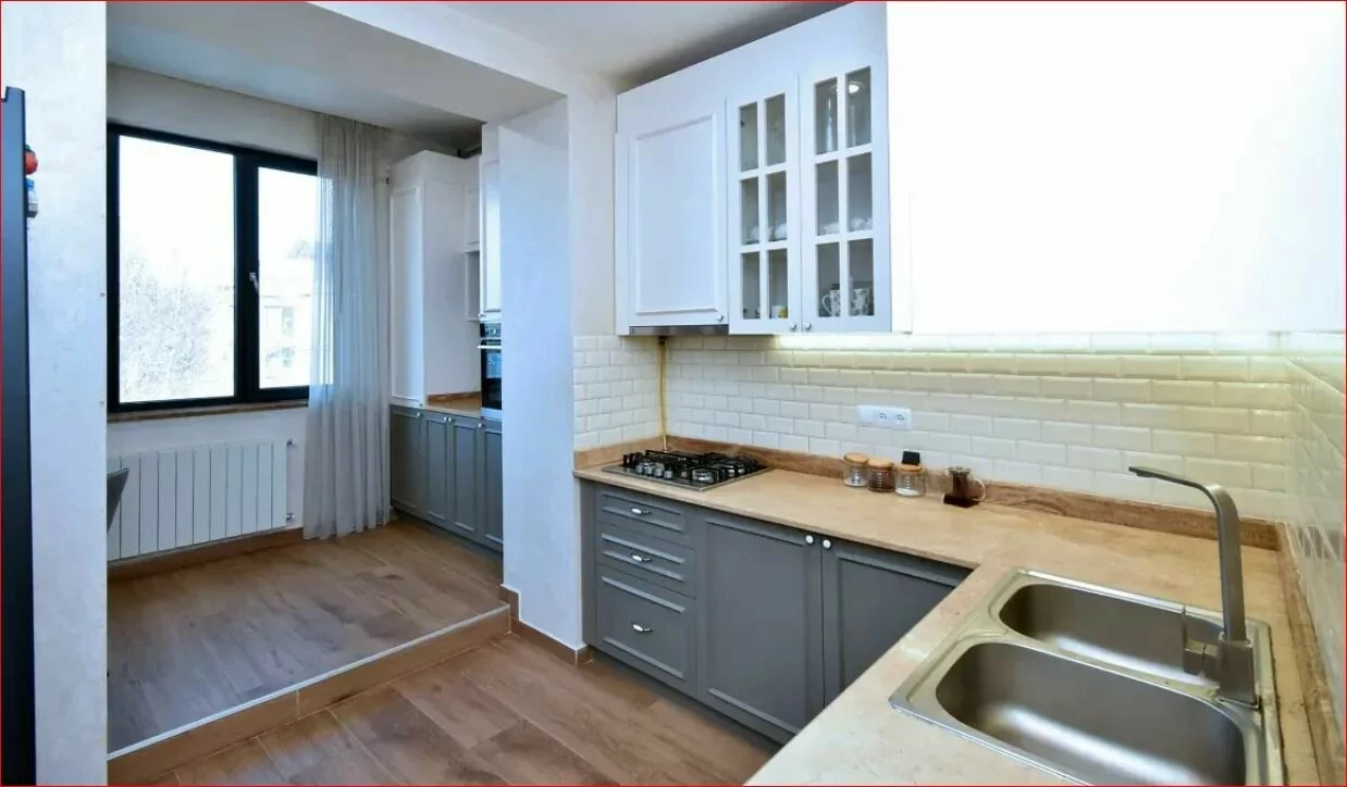 A 3-room, fully renovated apartment is for sale near Mergelyan Park. All utilities are available.