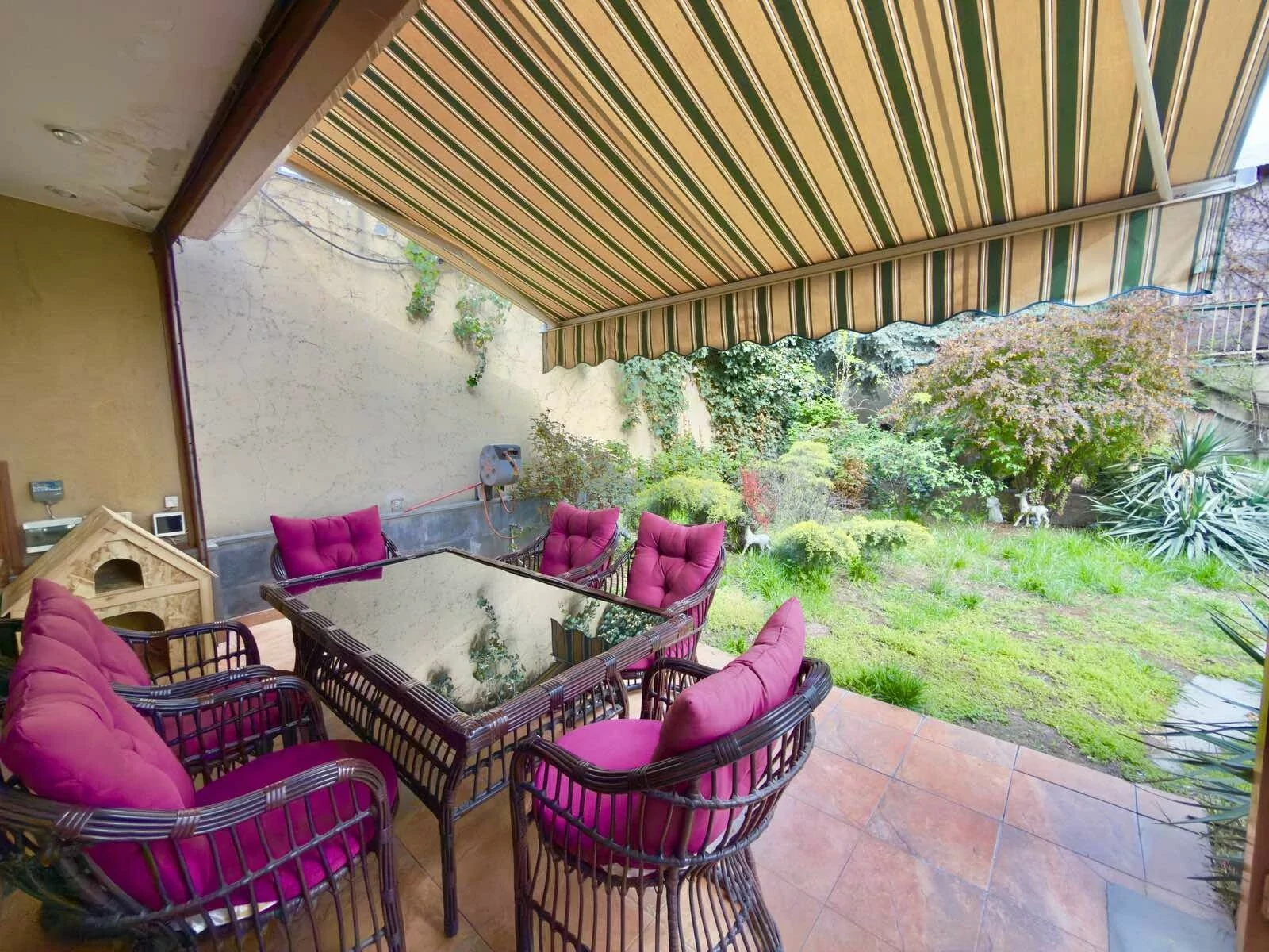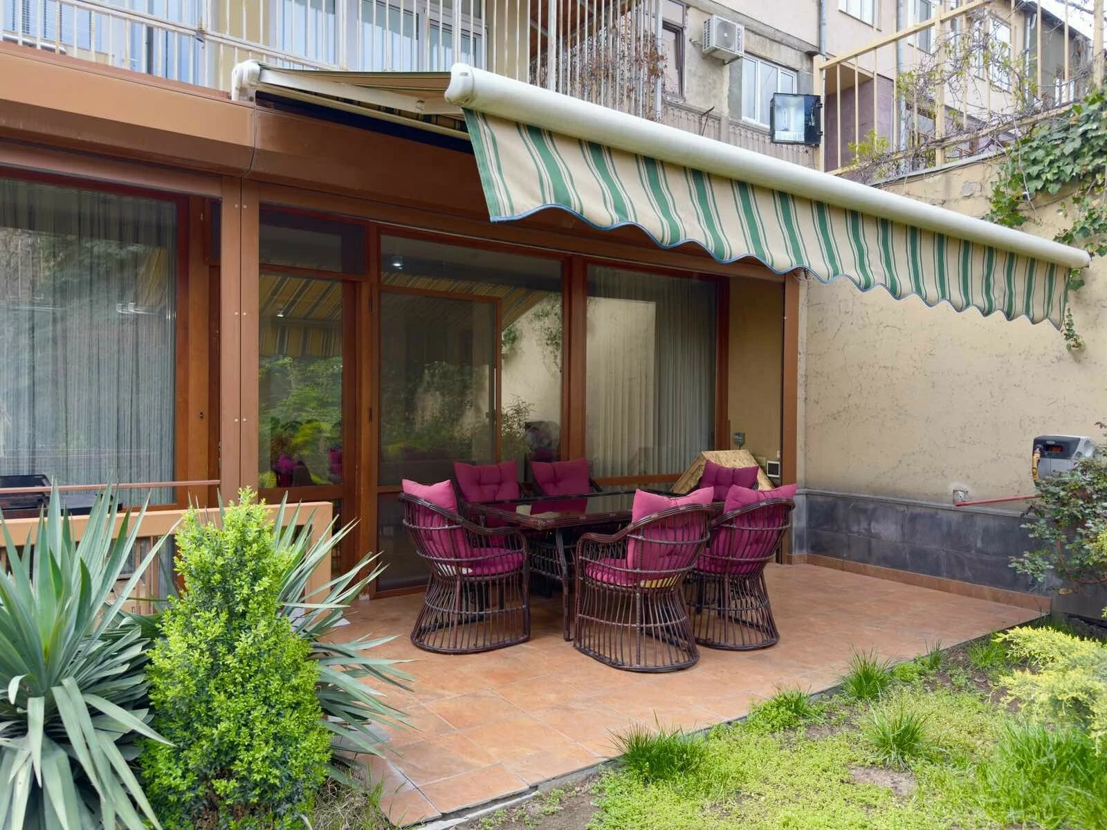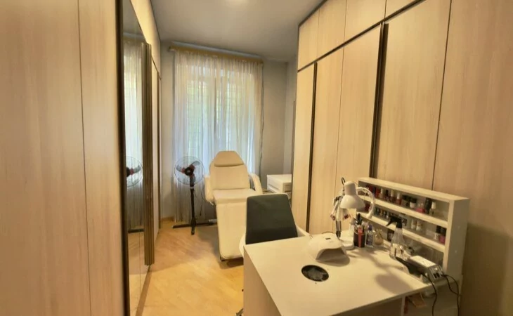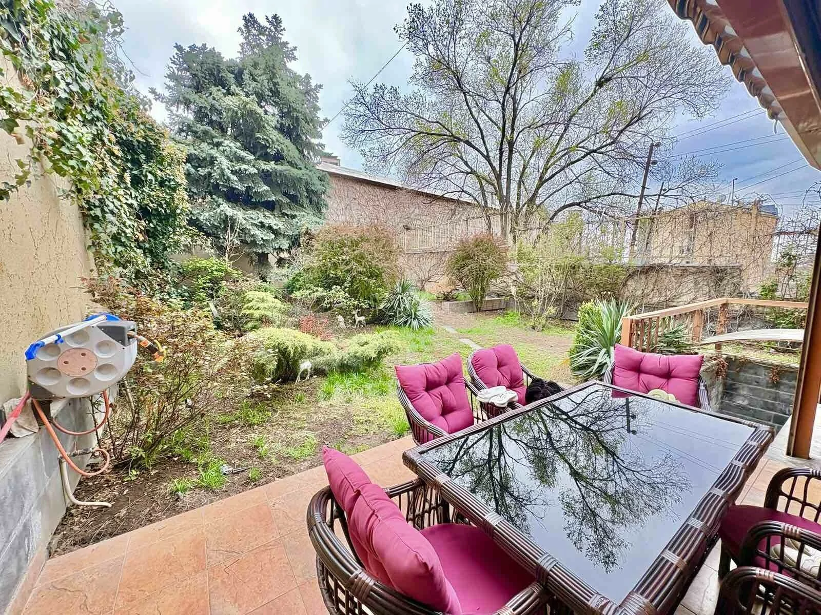 A 5-room apartment with all amenities is for sale. There are 4 bedrooms, 3 bathrooms, a private garden and 2 garages.