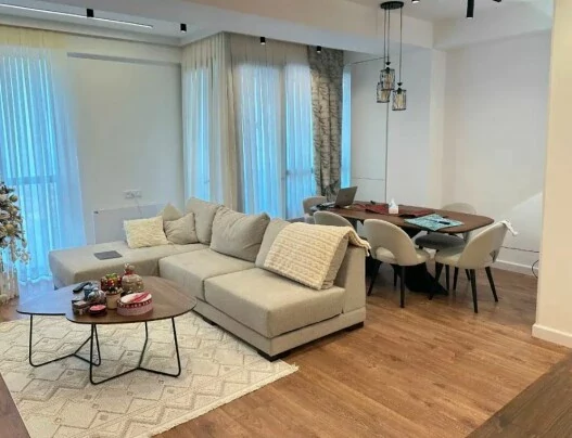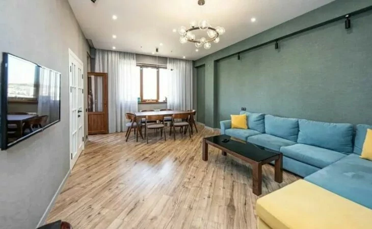 A 4-room newly renovated apartment is for sale in the newly built comfortable district of Tsarav Aghbyur, with a total area of 126 square meters and is located on the 4th floor of a 14-story stone building. The apartment has a beautiful interior with designer solutions, all rooms and the kitchen are beautifully furnished, equipped with necessary appliances. An individual heating system is installed, the floor is covered with high-quality laminate and ceramic granite (the floor in the hallway is heated - теплый пол). There are 2 bathrooms and 1 guest toilet, which are tiled with high-quality tiles and equipped with high-quality plumbing. The apartment is equipped with all amenities, has 2 bedrooms and 1 study (which can be easily converted into a bedroom), 3 open balconies with beautiful views. The district is well-maintained, and high-quality service is provided by the efforts of the condominium, the building has a convenient playground. There are 2 elevators, one of which is a lift. Sold with furniture and appliances.