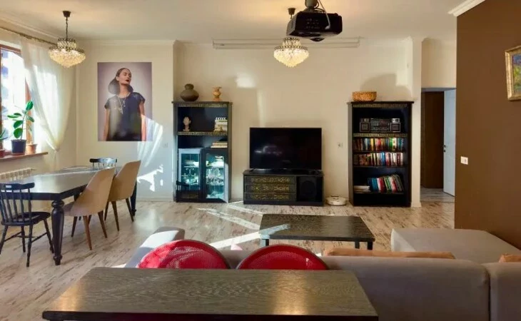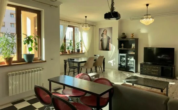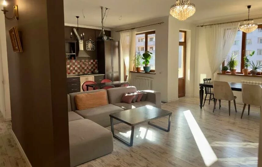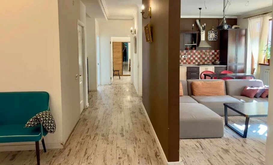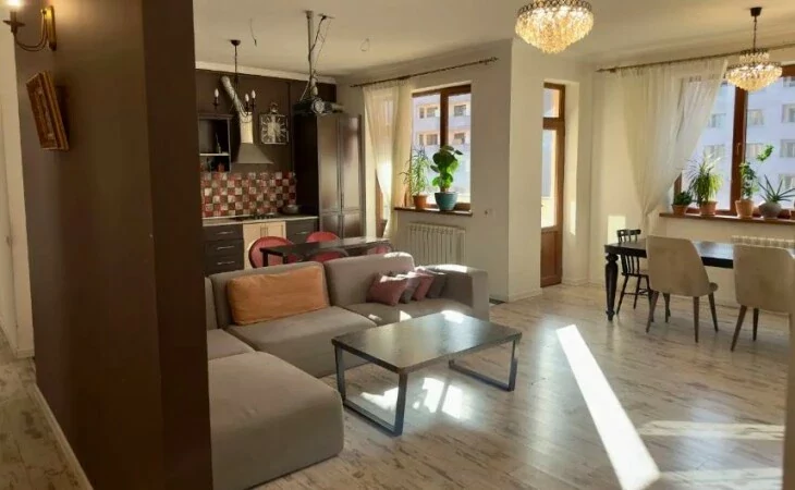 On Tsarav Aghbyur Street, in a quiet neighborhood, a 4-room apartment with an area of 122 square meters. The apartment is located on the 11th floor of a newly built 14-story building.