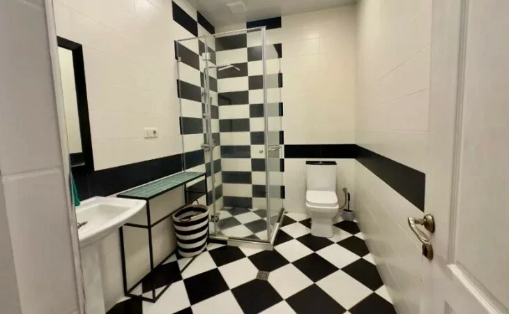 It has 2 bathrooms and 2 open balconies. There are 2 elevators in the building. All necessary infrastructure, playgrounds and shops are nearby.