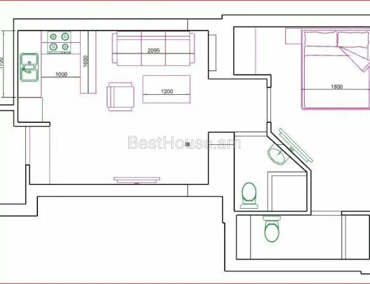 2 room apartment, Isahakyan St, Center (Yerevan)
