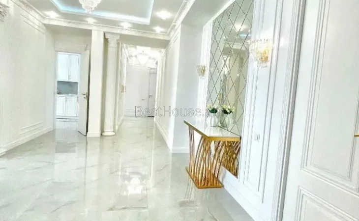 A luxury 4-room, designer-style renovated apartment with an area of 160 square meters is for sale on Rostomi Street. There is a playground, outdoor and covered parking, several balconies, garage. Equipped with the necessary high quality property and appliances. The apartment has 24-hour security and a cleaning lady.