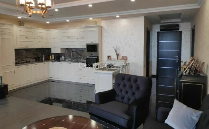 A beautiful 2-room designer-style renovated apartment with an area of 93 square meters is for sale on Antara Street. There is an outdoor parking space, an open balcony. The building has a car wash, a parking lot, and a playground. Equipped with necessary property and equipment. There is a beautiful space on the roof where you can have a great time.