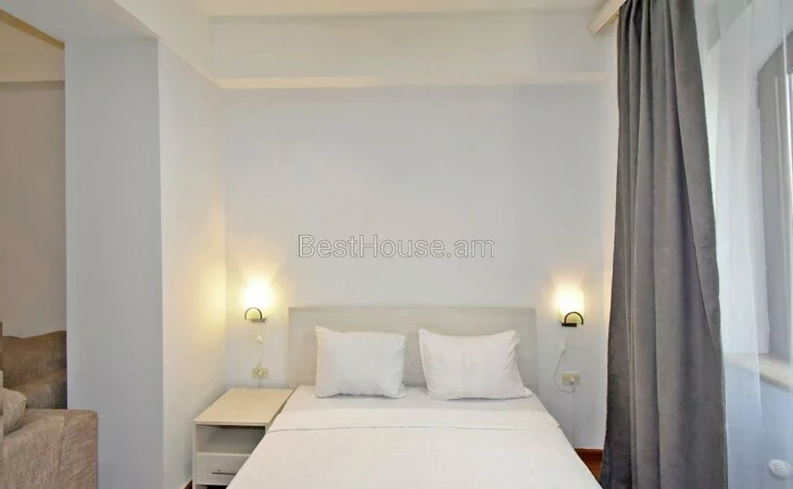 1-room studio apartment for sale, in one of the best buildings in Yerevan, equipped with all amenities. It is suitable for tourist purposes.