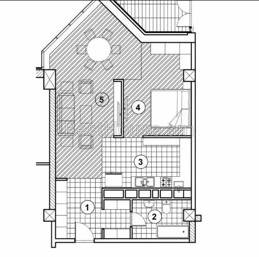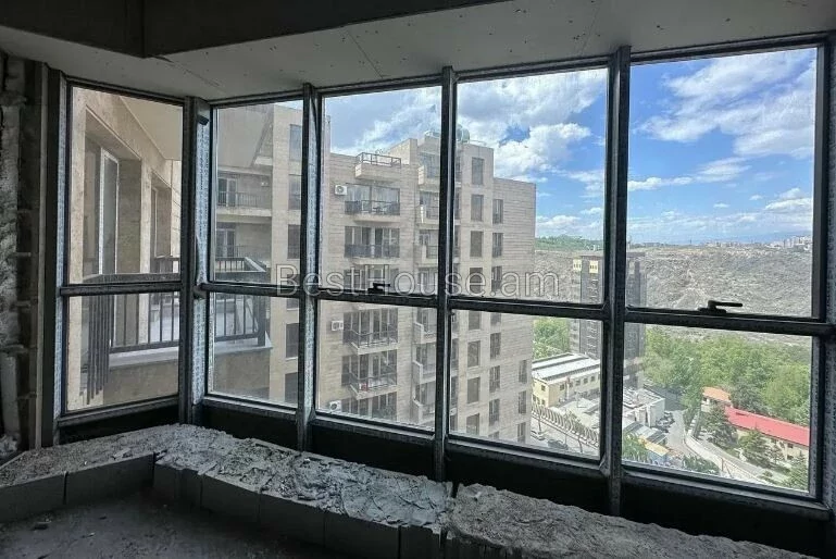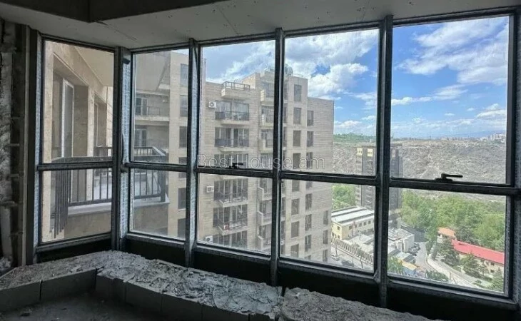 The apartment is in zero condition, which makes it possible to make divisions as desired. Stained glass windows are installed, thanks to which the apartment is bright and has a beautiful view.