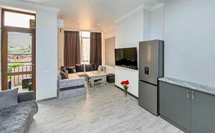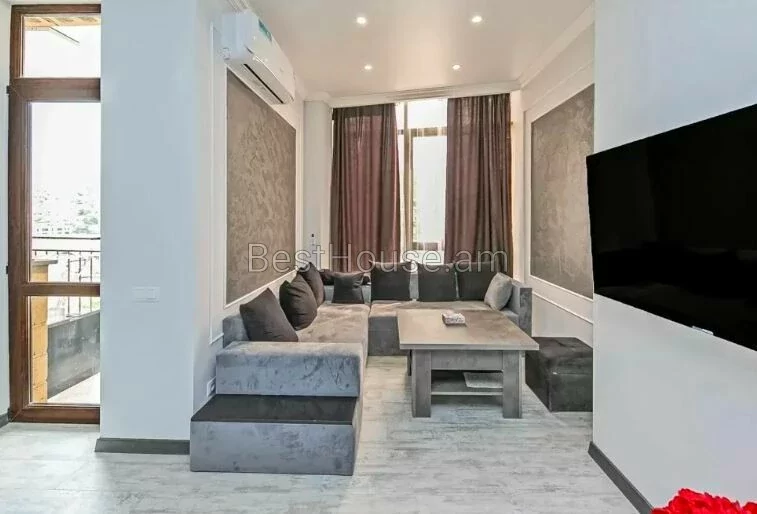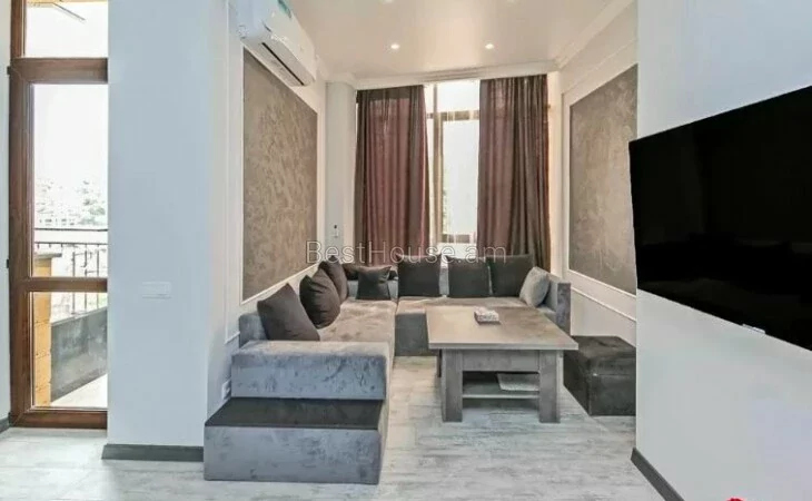 An apartment is for sale on Vardanants street, on the 7th floor of a newly built building. The apartment is completely renovated. It has a living room, a bedroom, a dressing room and an open balcony. Sold with property and appliances.