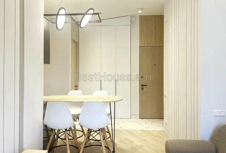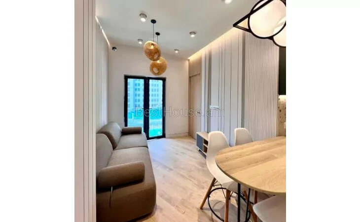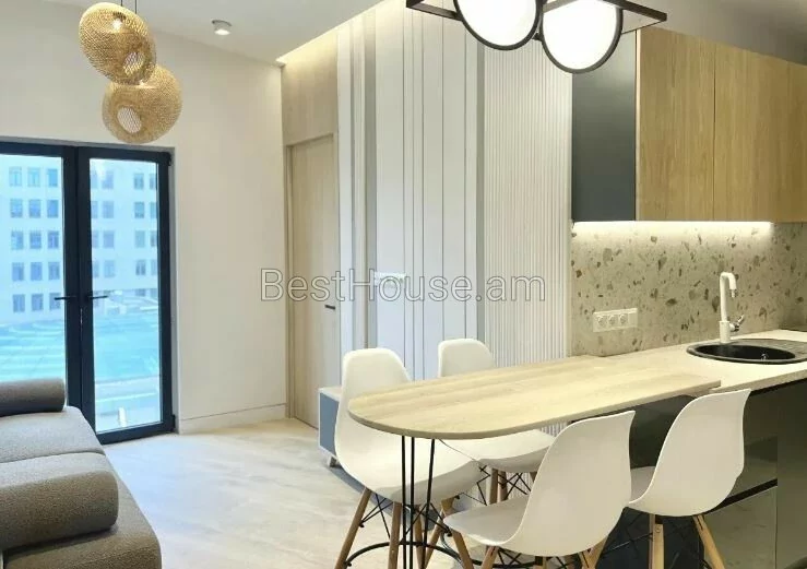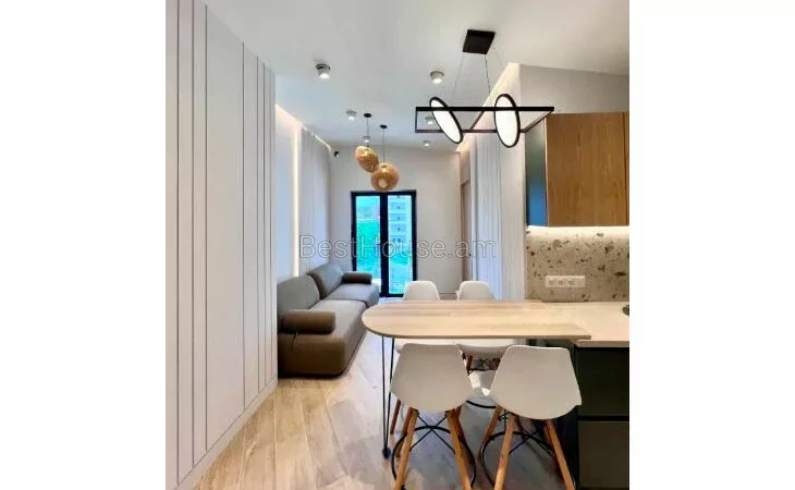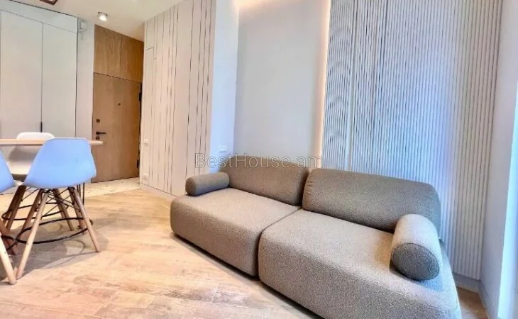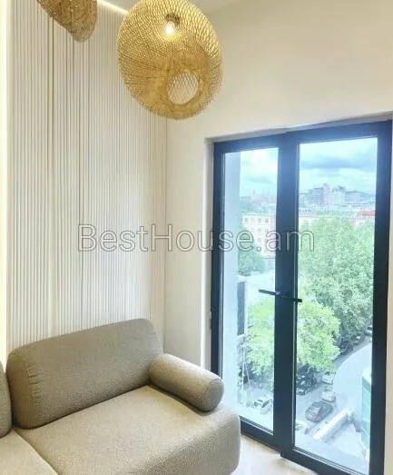 A 2-room apartment is for sale at the beginning of Khorenatsi Street in a newly built building next to Elite Plaza, 500 m from Republic Square. The apartment is renovated according to the design project with high-quality materials and equipment, it is bright, it has 1 bedroom, 1 bathroom, two open French balconies in the living room and the bedroom. High-quality heating system - gas boiler and air conditioner. It is sold with all the property and equipment.