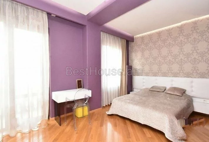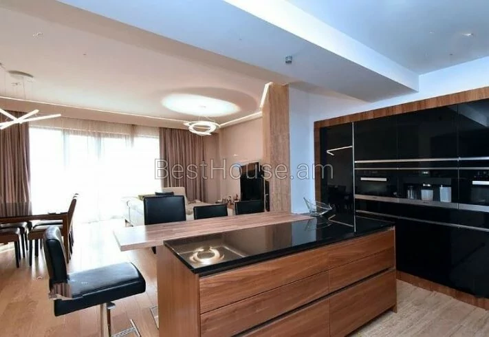 For sale: 3-room (there is a possibility of 4 rooms) apartment with a unique design and high-quality furniture, 138.2 sq.m. area, which is located on Verin Antarai street, on the 4th floor of a 6-story elite newly constructed building. The apartment is fully renovated with high-quality materials. Euro windows are installed, the floor is covered with quality parquet and tiles. The heating and cooling system of the apartment is neutralized. There are 2 bathrooms, which are covered with tiles, equipped with sanitary equipment, and a bathtub is installed. The kitchen furniture is new, European production (German). The apartment is furnished in a modern style, equipped with the latest generation of expensive appliances, there is a dressing room and built-in wardrobes. The apartment has 3 open balconies, 2 facing Saralanj, 1 facing Mount Ararat. There is a basement. The building has a high-quality elevator, a security system with a 24-hour security guard. The area is green and constantly maintained, there is a parking lot, an outdoor swimming pool and a playground.