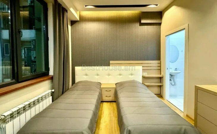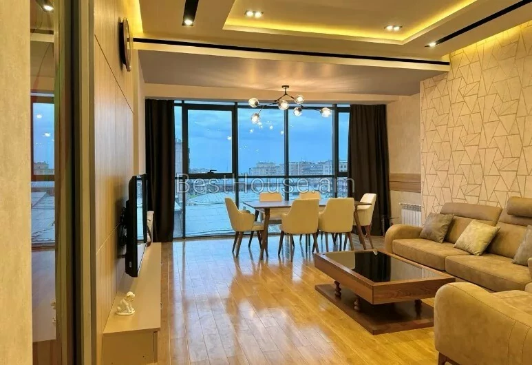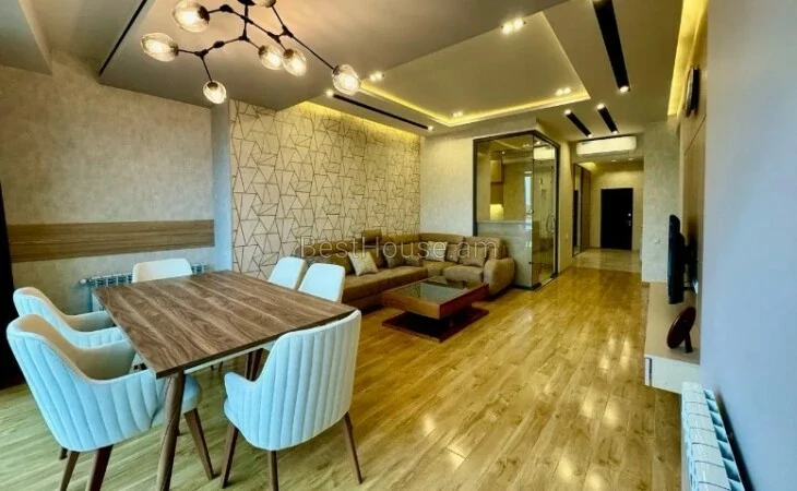A 4-room apartment for sale in a newly built building on Tumanyan street, 98 square meters, 3+ bathrooms. The apartment is sold with a parking space. Parking $35,000. Both together $690,000