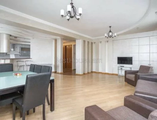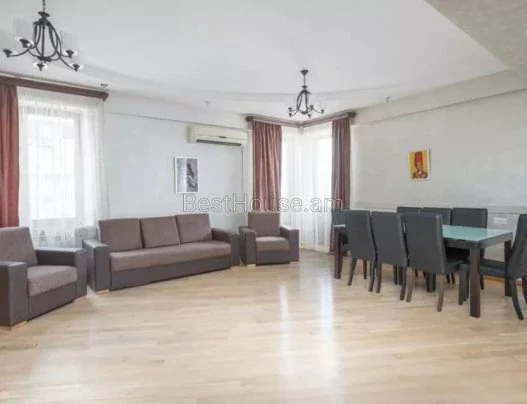 A 4-room apartment is for sale on Nalbandyan street, the total area is 144 square meters, 3 bathrooms, it is furnished and uninhabited. It is heated by a gas boiler and has air conditioners. For sale with furniture and appliances