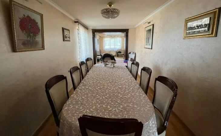 A 6-room apartment for sale in a newly built building, in the center, 204 square meters, several balconies. The apartment has 2 floors, 8 and 9 floors, has 4 bedrooms, 3 bathrooms, is sold with furniture.