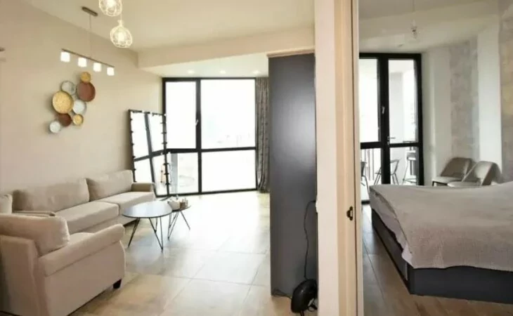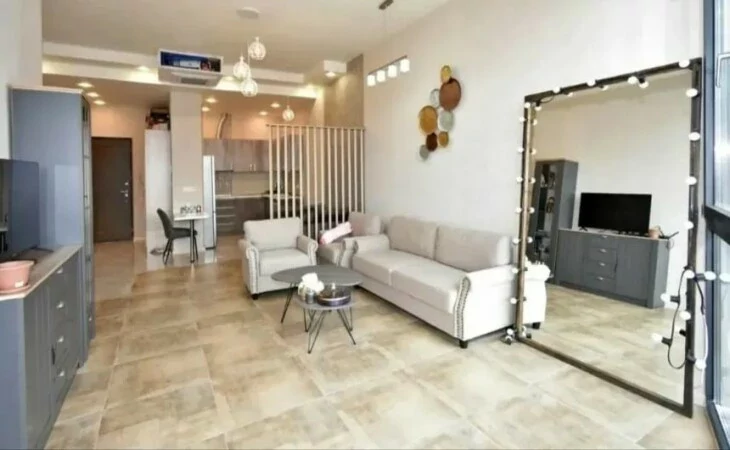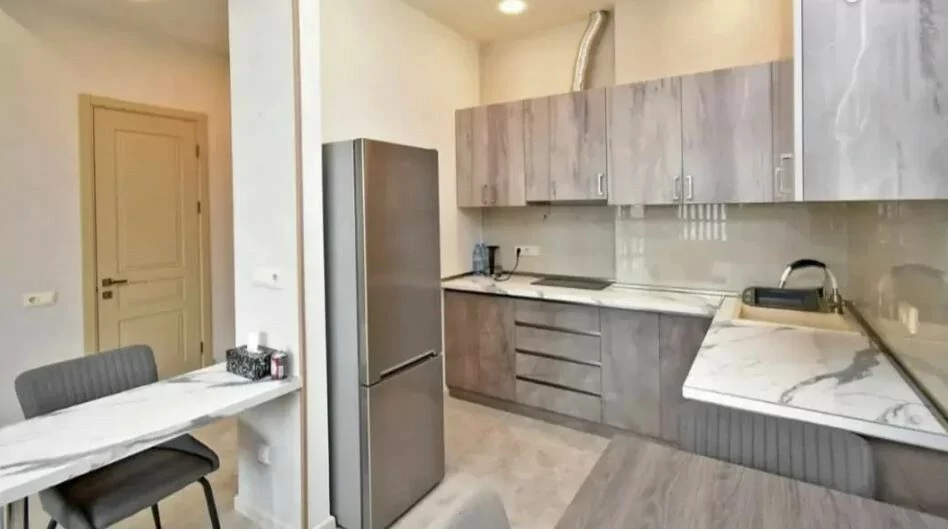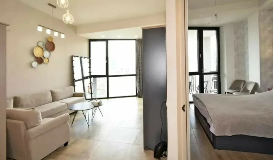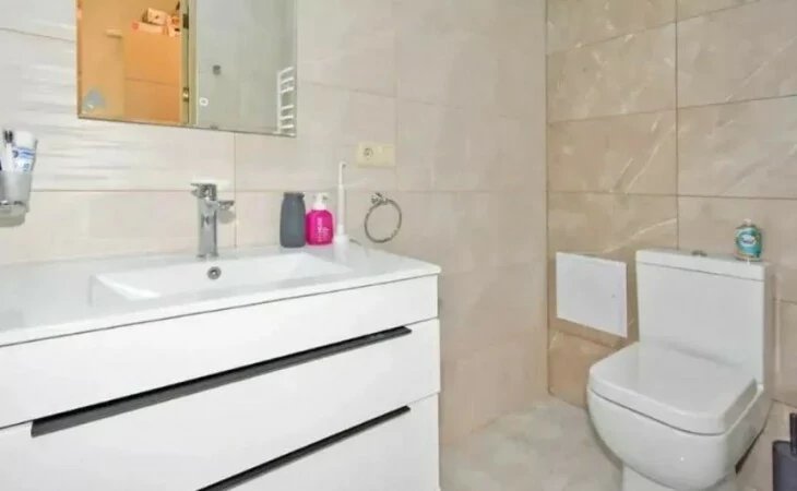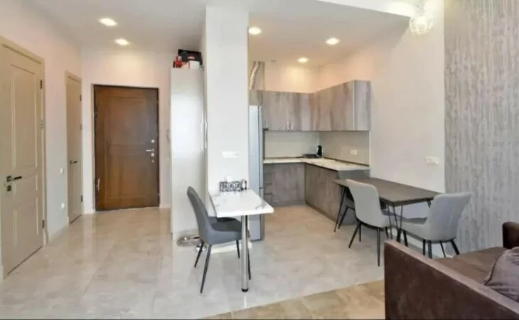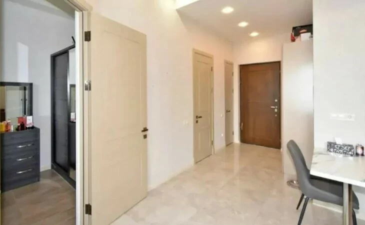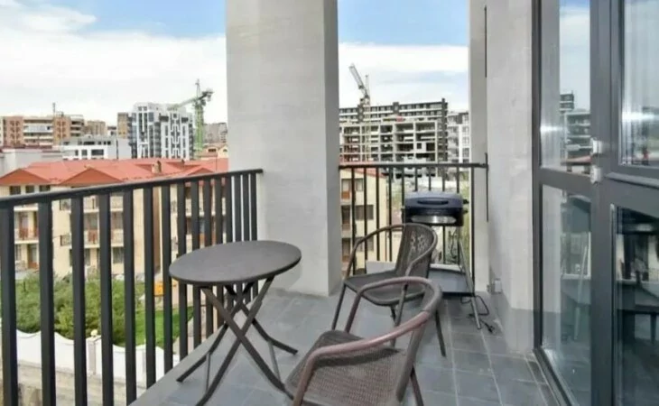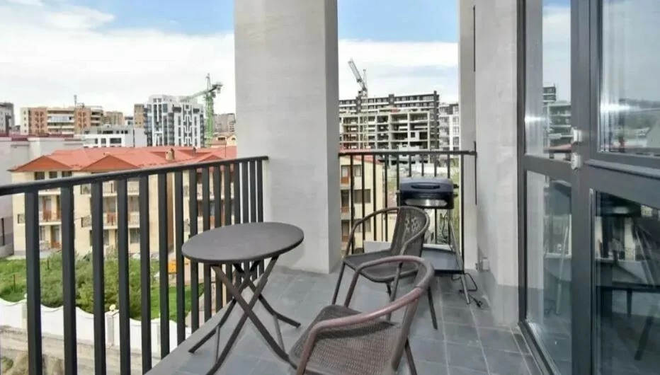 The apartment has 1 bedroom, bathroom, as well as an auxiliary room / utility room /, kitchen, living room. It is new, renovated and fully furnished.