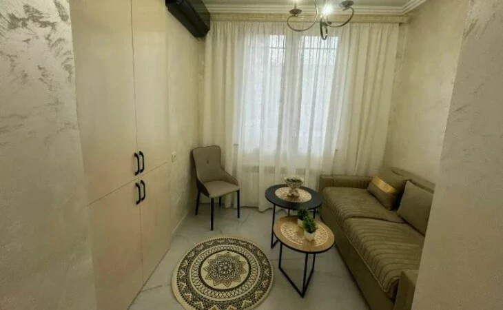 A 2-room, fully renovated apartment with furniture and appliances is for sale on Zakyan Street.
