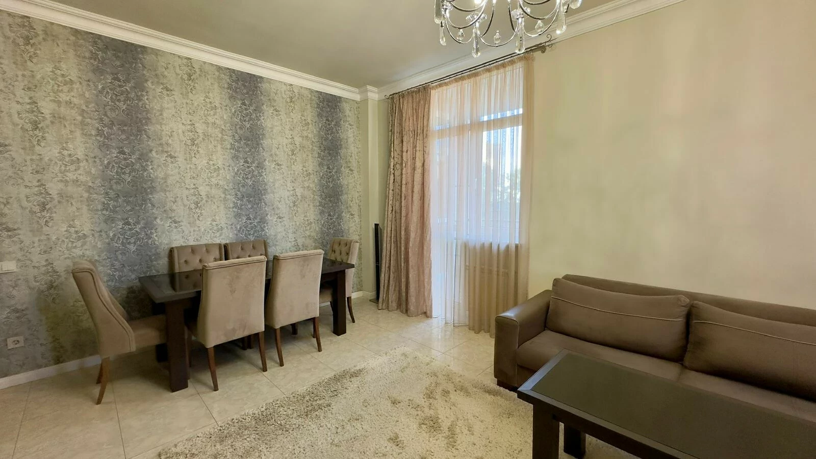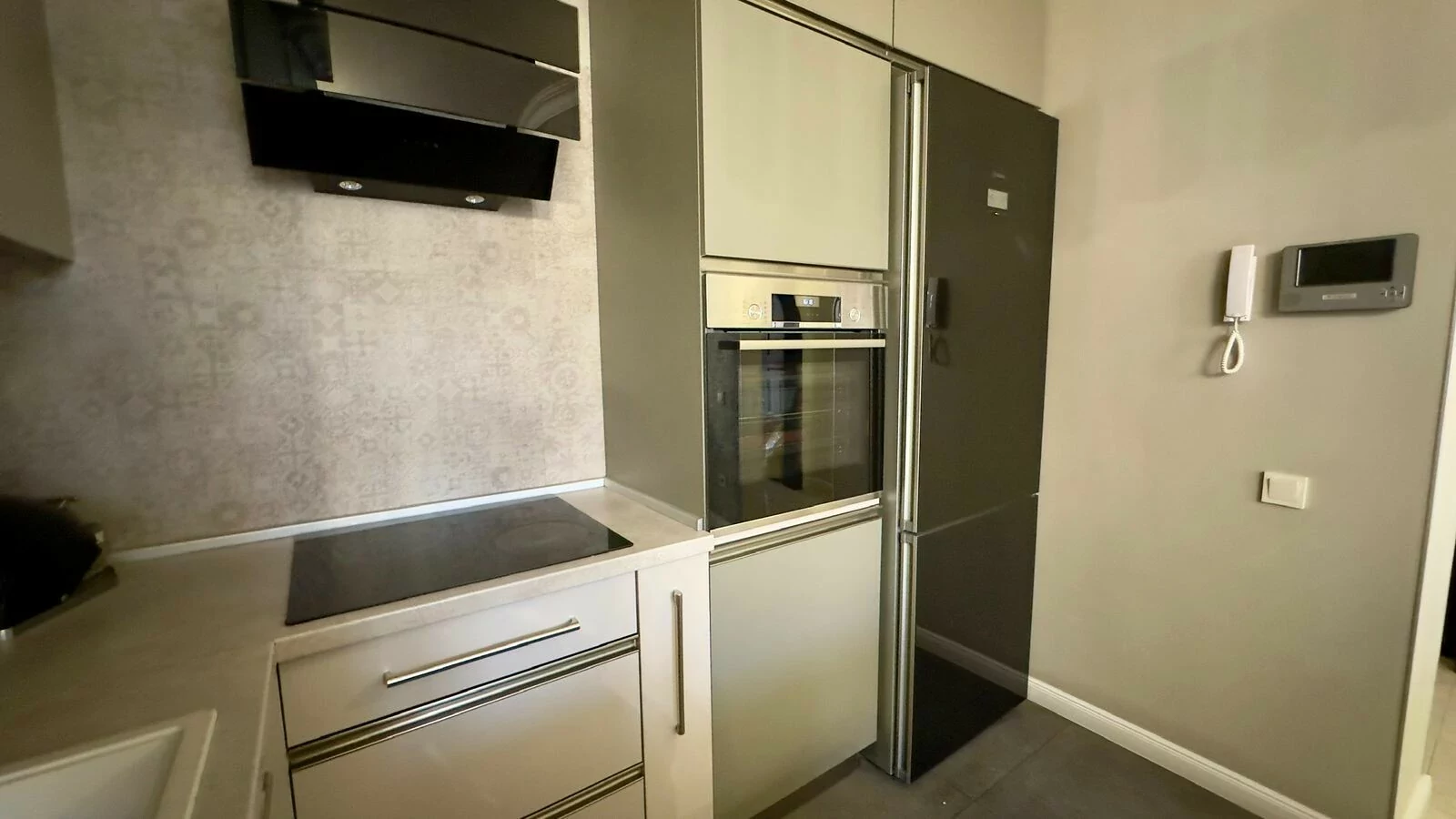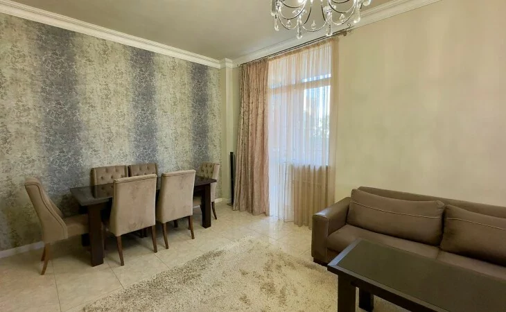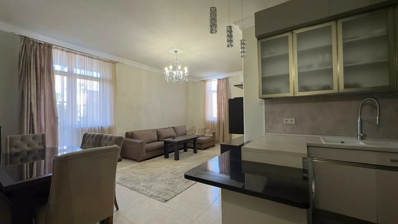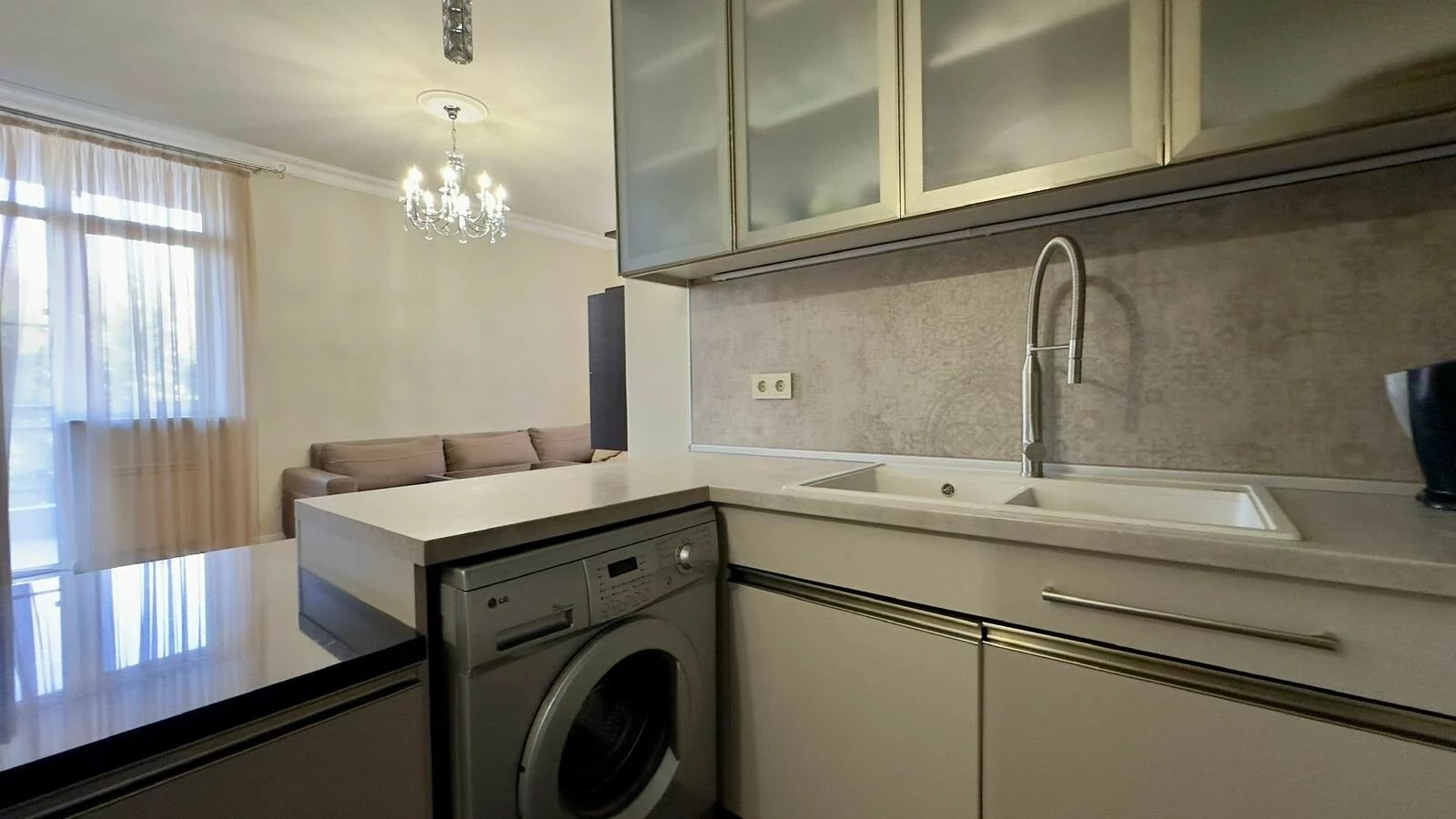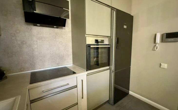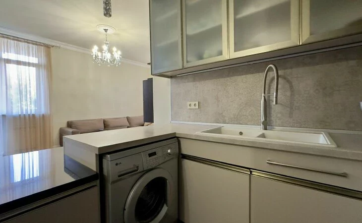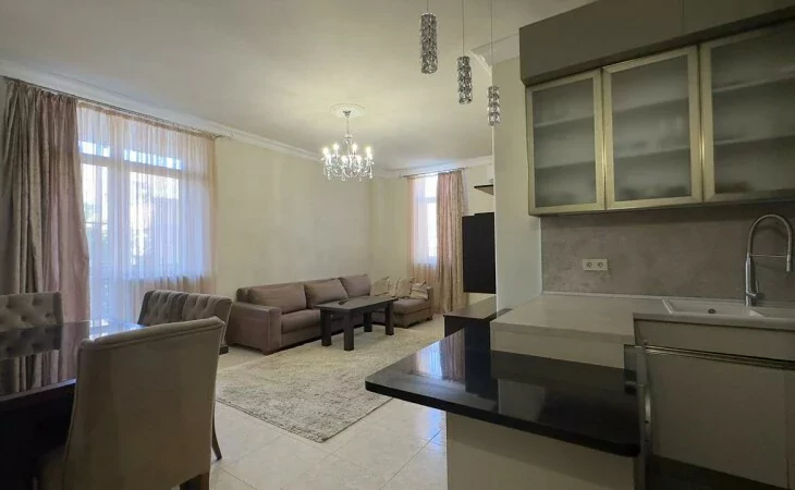 A 3-room, fully renovated apartment is for sale in a newly built building in Rostom. All communal amenities are available.