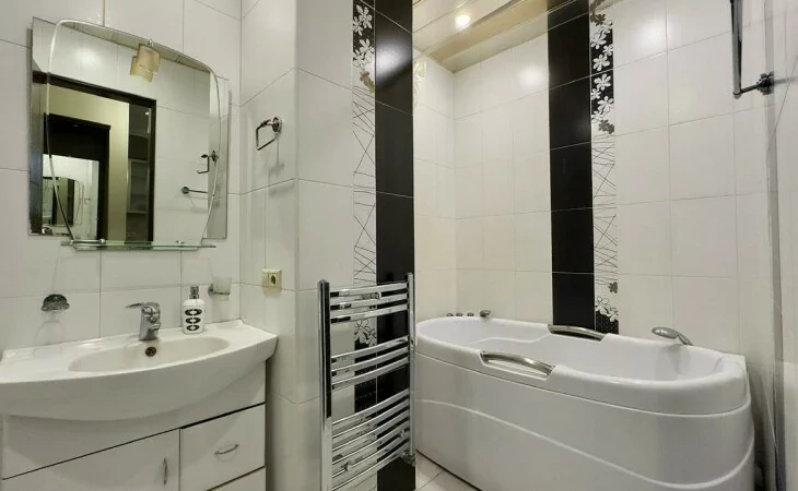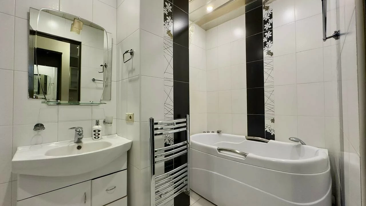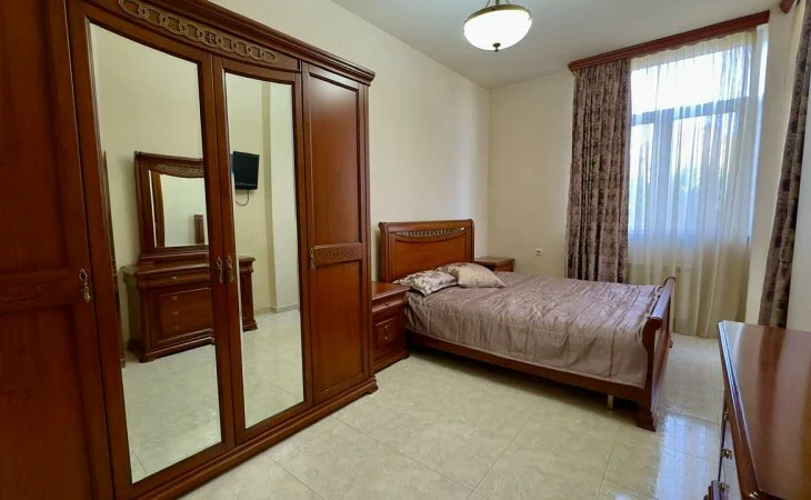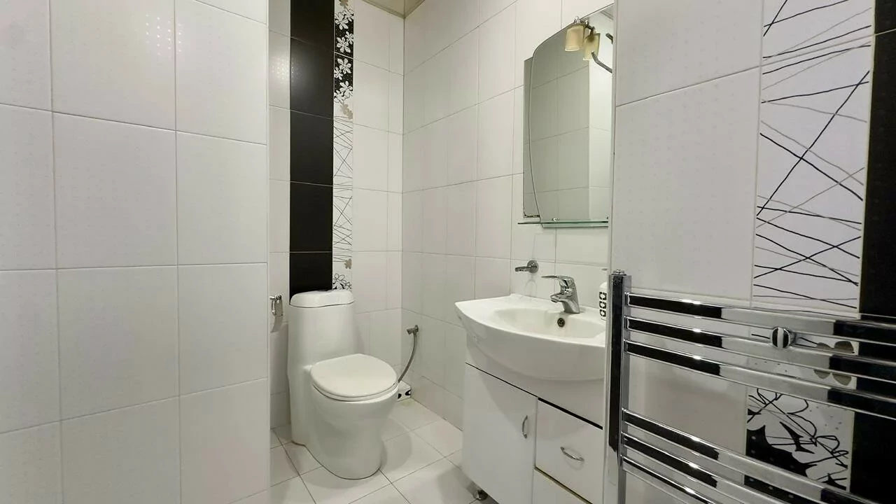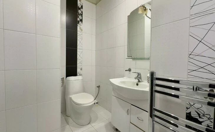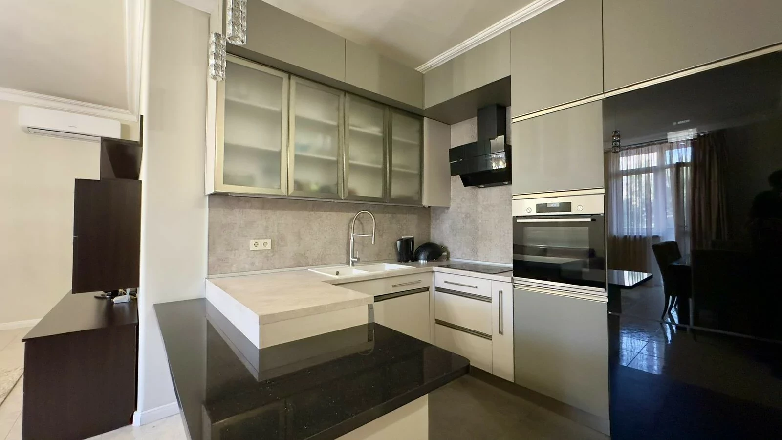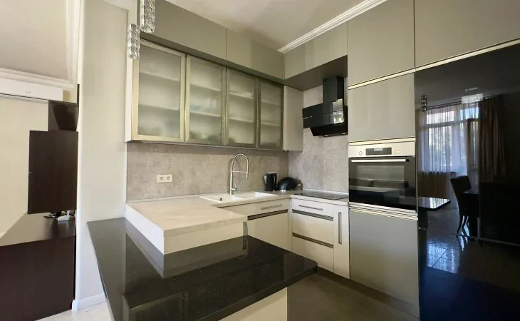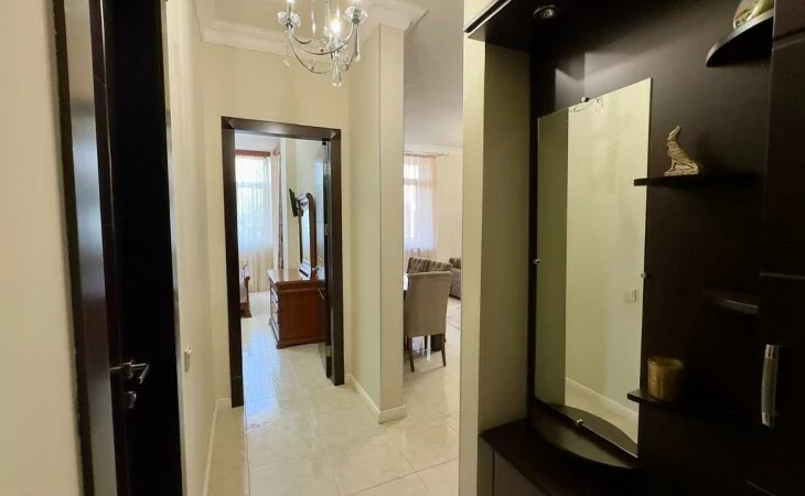 A 3-room, fully renovated apartment is for sale in a newly built building in Rostom. All communal amenities are available.