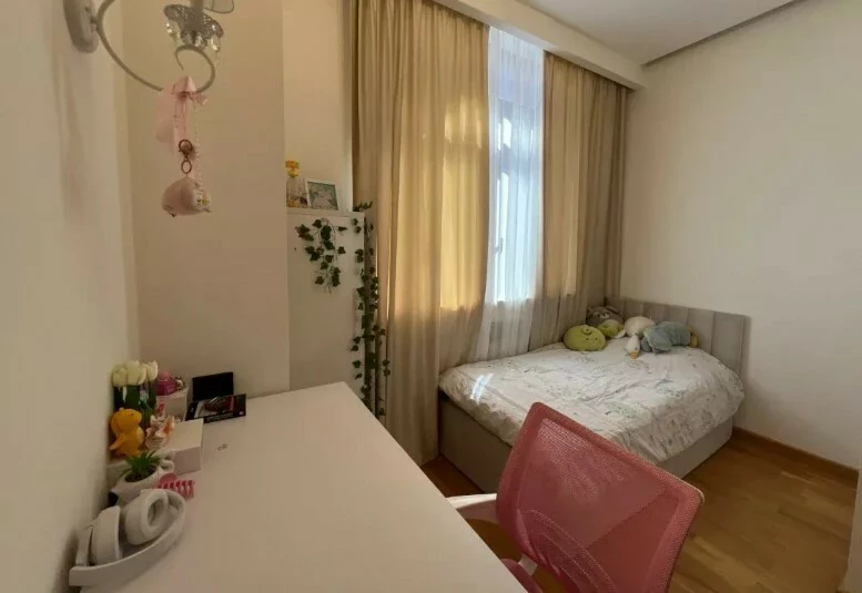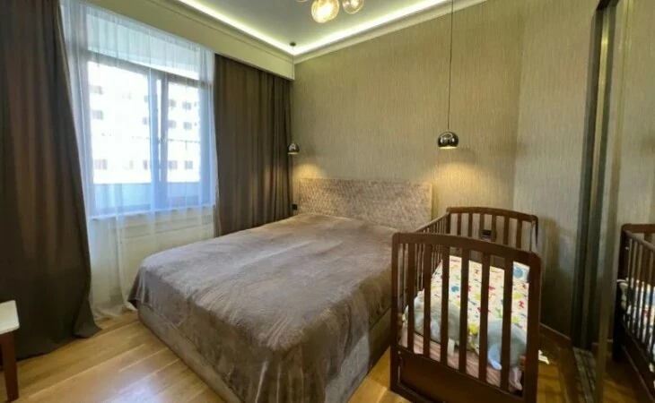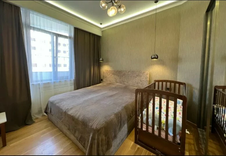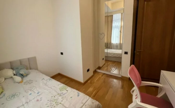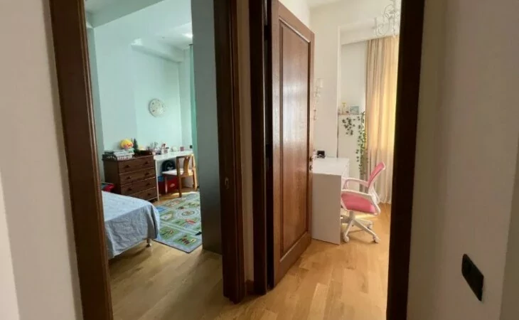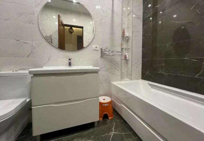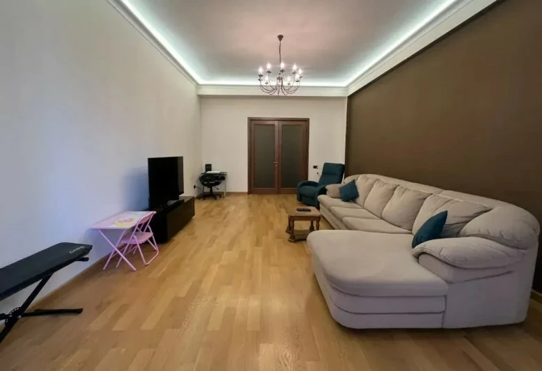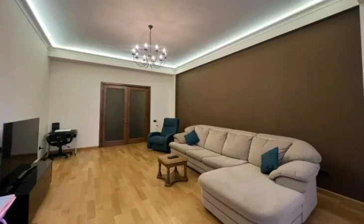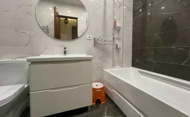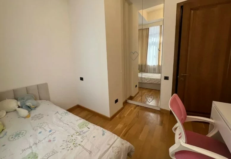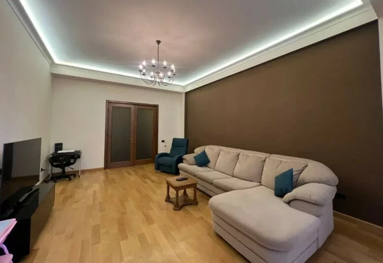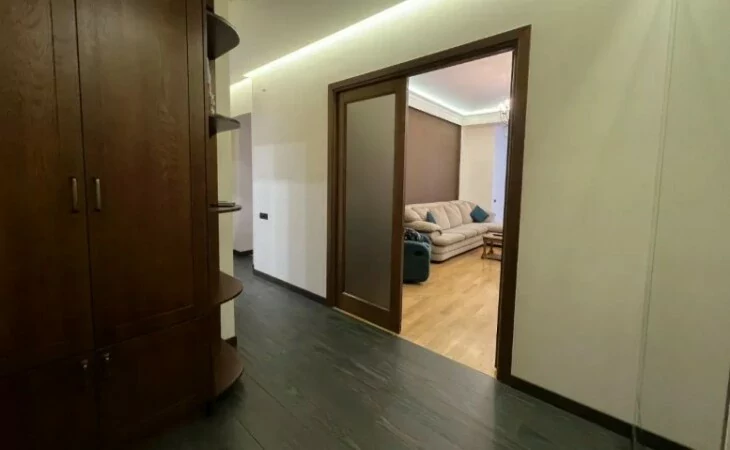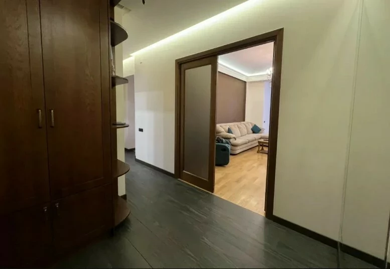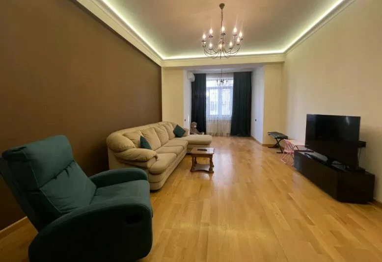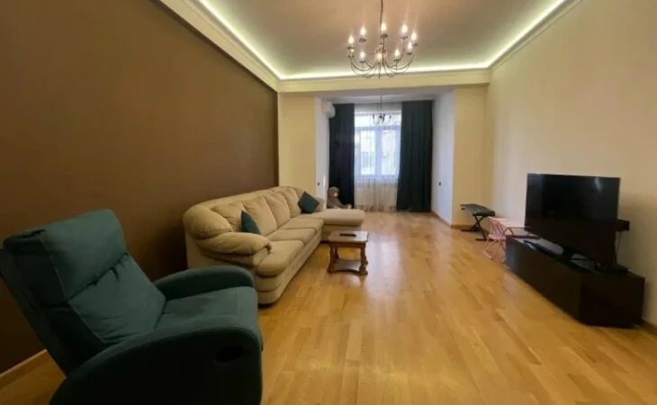 4-room apartment in a newly built building on Arami Street, 110 sq. m., 2 bathrooms, high ceilings (3.2 m). The apartment was fully renovated in 2020. An iron entrance door, euro windows, an individual heating system from BOSCH are installed, the floors and interior doors of the bedrooms and living room are made of oak wood, the bathrooms and the hallway are tiled with high-quality Spanish tiles. The floor of the kitchen, bathrooms and hallway is heated.
