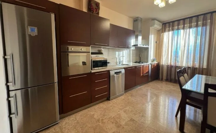 This is located in the center, unlike Verin Antarayin. A spacious 4-room apartment is for sale. Total area 166.1 square meters. Located on the 6th floor of a 9-story new building. It has wonderful views of the entire city and Mount Ararat. The apartment has been renovated with high-quality materials, An individual designer project of the apartment has been carried out. The floor is parquet and Travertin, furnished with high-quality furniture (NIKO and MEK), equipped with branded high-quality household appliances (ZigZag) and all necessary accessories. All rooms have high-quality MITSUBISHI air conditioners. There are 2 bathrooms, the apartment has a dressing room and 2 balconies with beautiful views. The building has high-quality elevators, the Cascade complex and the Opera area can be reached on foot in 5 minutes. The property and equipment are partial.