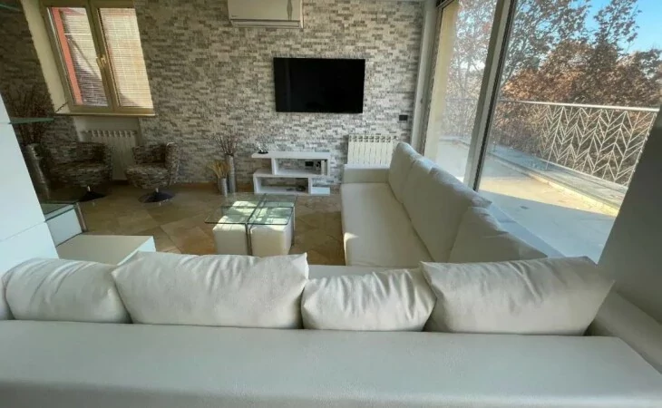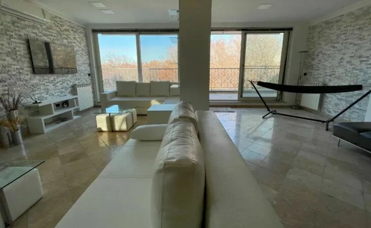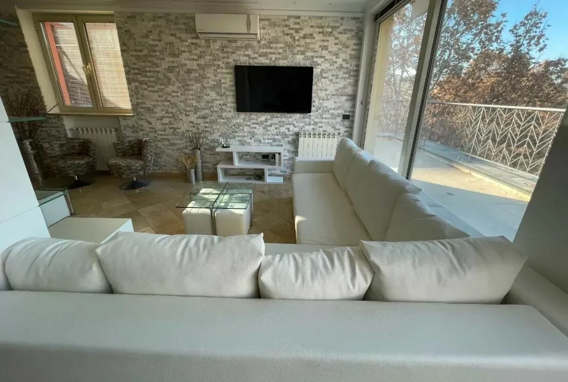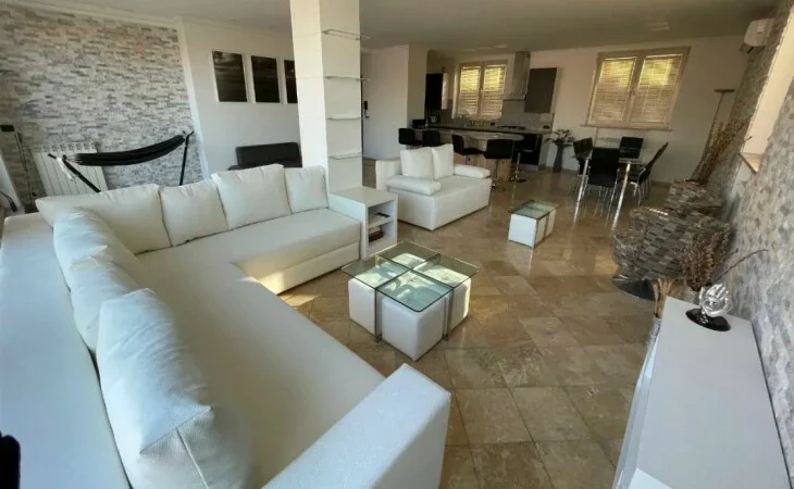 For sale is a unique penthouse in a newly built building in a small center, with all utilities, the entire floor is occupied by one apartment.
