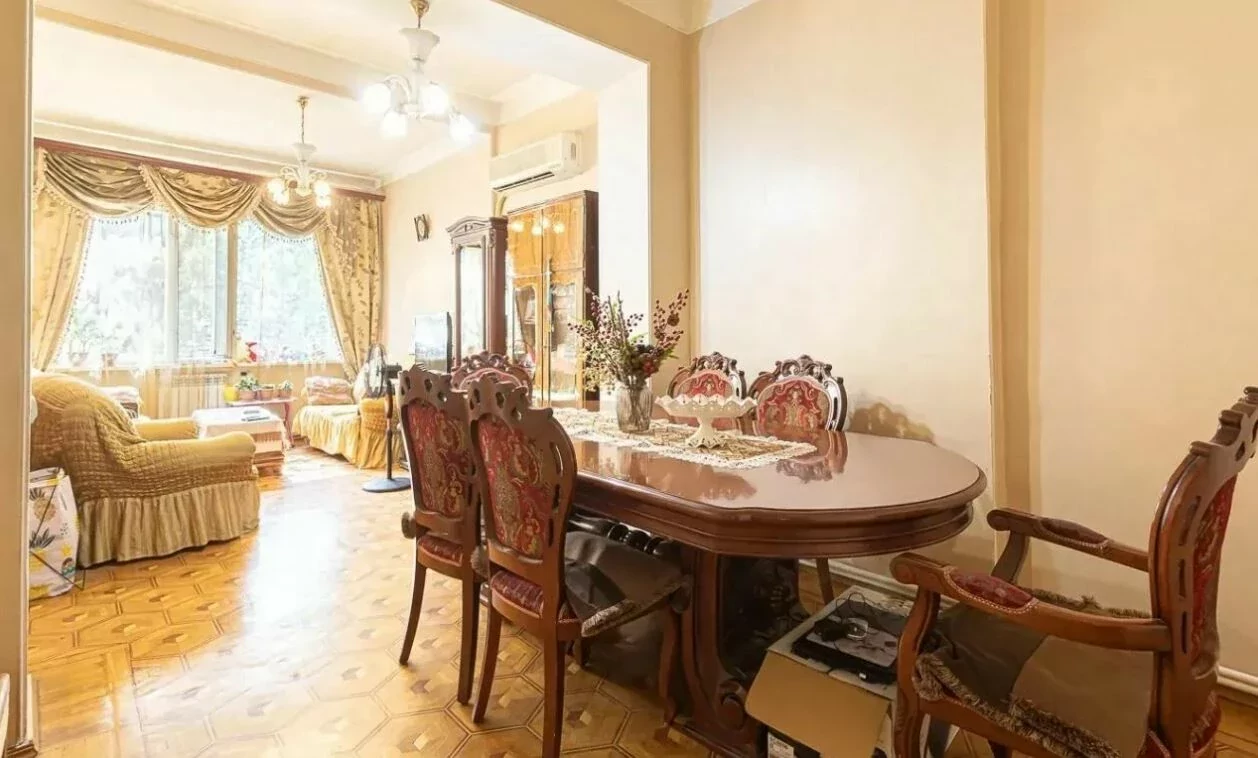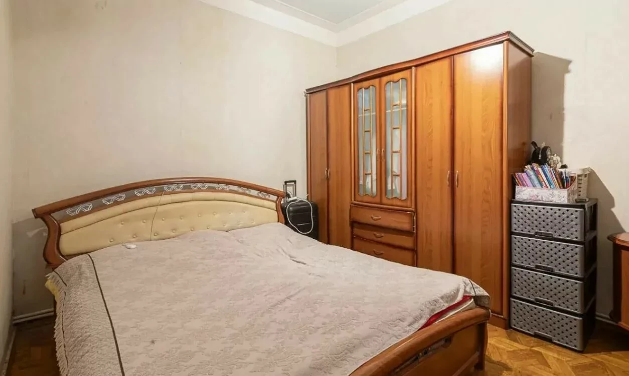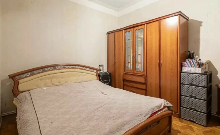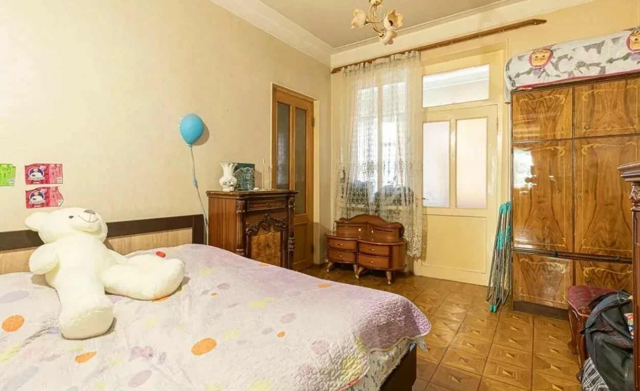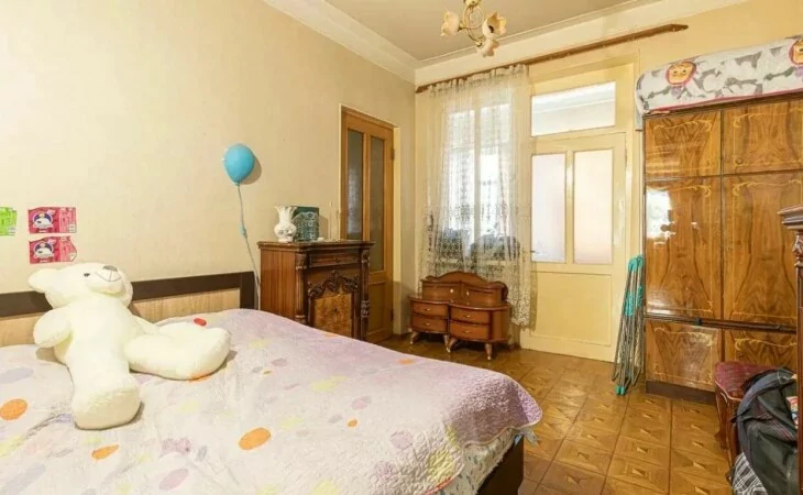 The apartment is located on the 2nd floor of a "Stalinist-designed", reinforced concrete, 4-story stone building. The ceiling height is 3.3 meters.