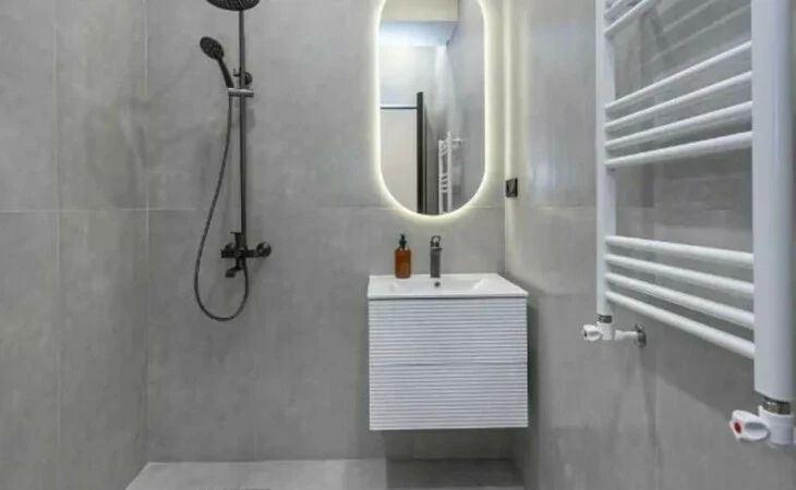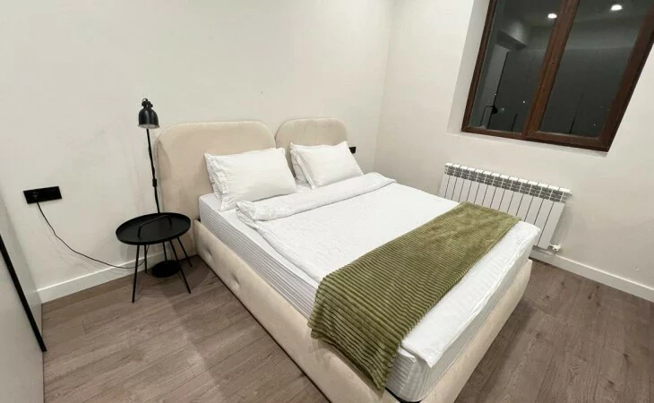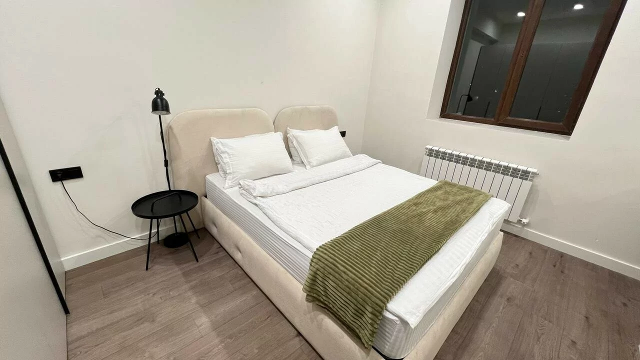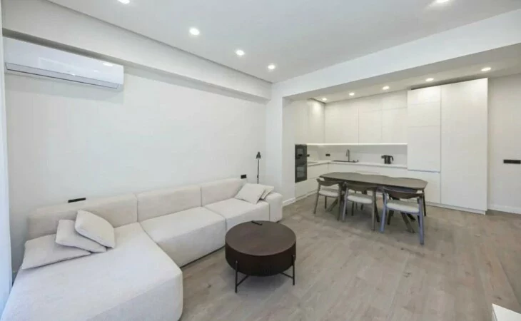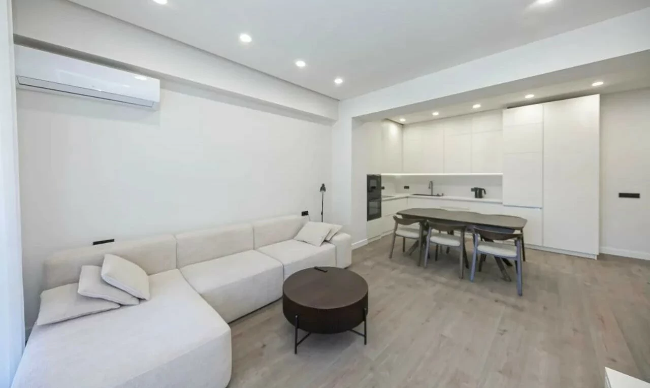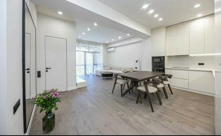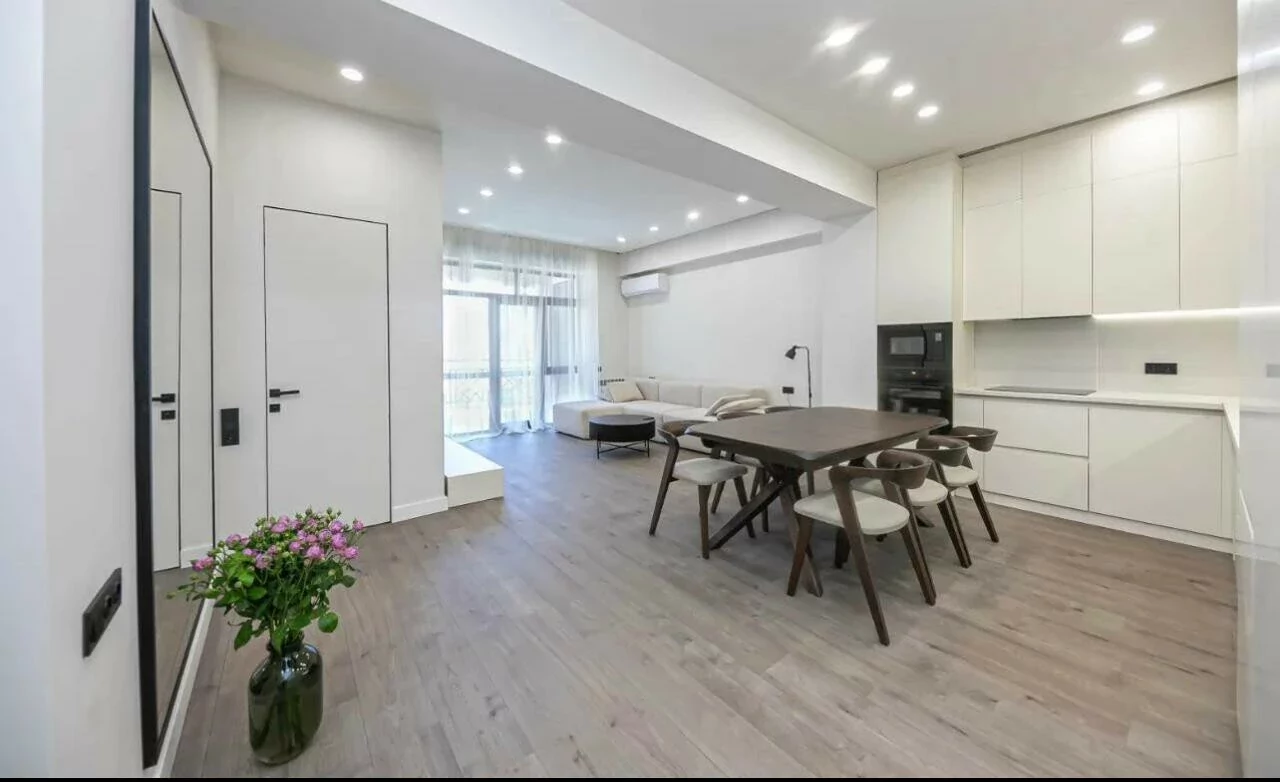A 2-room, designer-style renovated apartment is for sale on Mikoyan Street. All utilities are available.