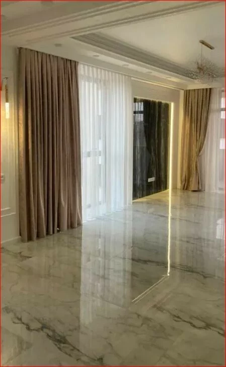 A spacious, 3-room apartment with a total area of 110 square meters is for sale in a newly built building on Mikoyan Street. It has been completely renovated, all utilities are available.