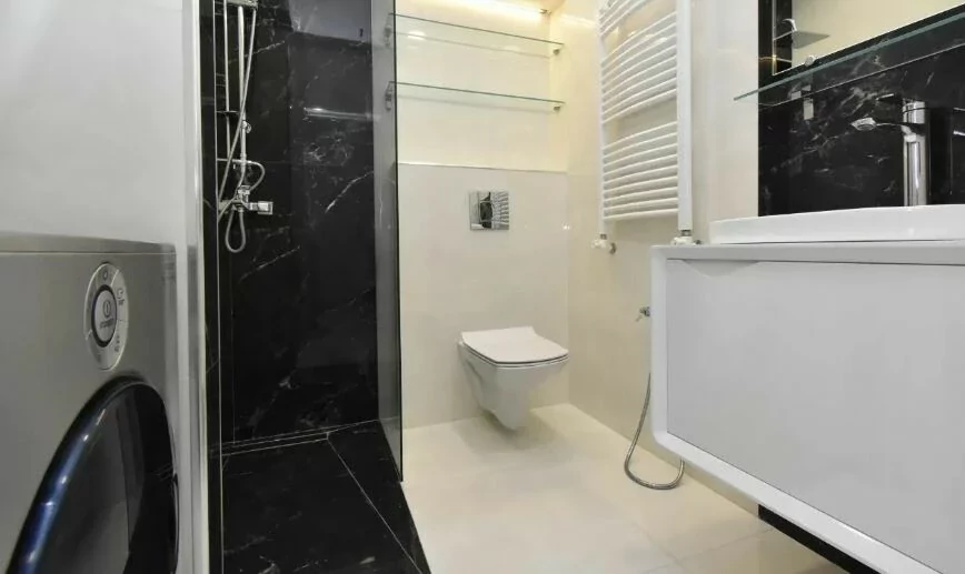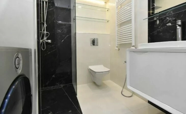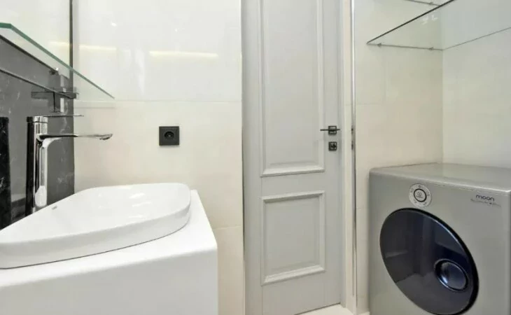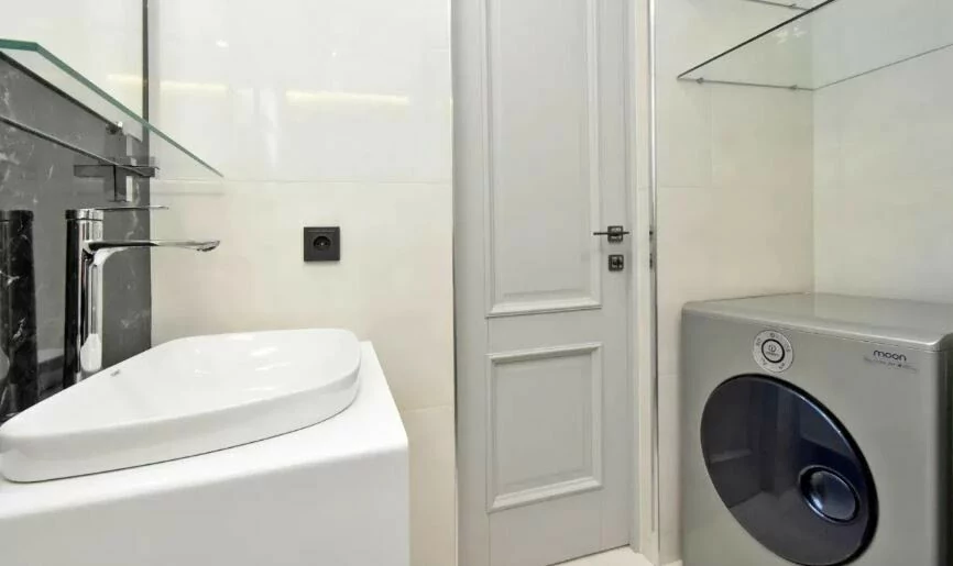 This apartment has 4 rooms, each room has windows, the apartment has 2 bathrooms. There are various shops and a transport stop near the house. The apartment is sold with all furniture and appliances.