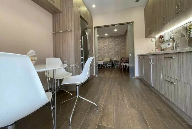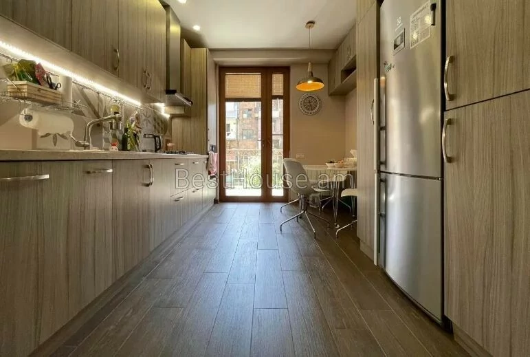 ...For sale is a bright 4-room apartment with an area of 116 square meters, located on the 3rd floor of a newly constructed 8-story monolithic building, on Lvovyan street. The apartment is completely renovated, individual heating and air conditioning systems are installed, Euro windows, the floor is covered with high-quality laminate and tiles, the 2 bathrooms are tiled with European-made tiles and are equipped with sanitary ware. The rooms and the kitchen are furnished in a modern style and equipped with household appliances. The apartment has a storage room and an open balcony. The building has 2 elevators, a security system. There is a park, shops, banks and transport stops nearby. Sold with furniture and appliances.