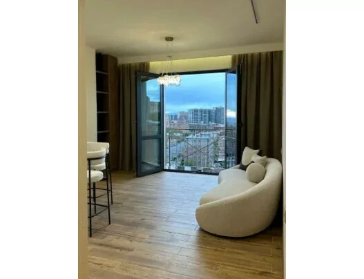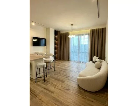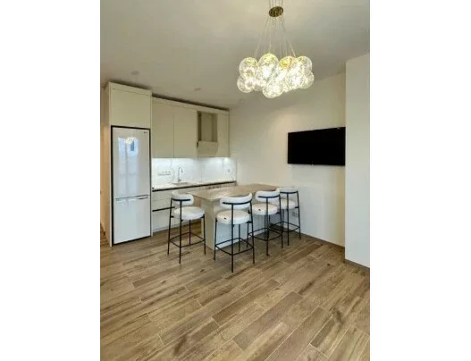 An apartment is for sale on the 5th floor of a stone building. The total area is 60 sq/m. It has a living room, a bedroom, a separate wardrobe; The apartment is fully renovated with high-quality materials. Electrical wiring and water lines have been replaced. A heating system and a warm floor are installed. The surface of the entire house is leveled and leveled.