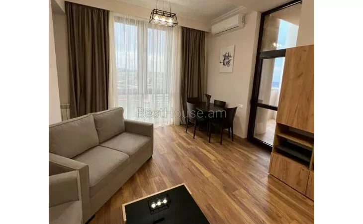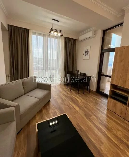 A fully renovated 2-room apartment in a high-class newly built building is for sale. The apartment is equipped with appliances, furniture and property: general heating system, 2 TVs with 200 + TV channels, Internet up to 300 Mb/s, washing machine, refrigerator, dishwasher, air conditioner, gas stove, kitchen fan, vacuum cleaner, iron, etc. The apartment's electrical security system meets the highest international safety standards (electric shock is excluded thanks to special devices). It has a great view of Mount Ararat. There is a supermarket on the 1st floor of the building.