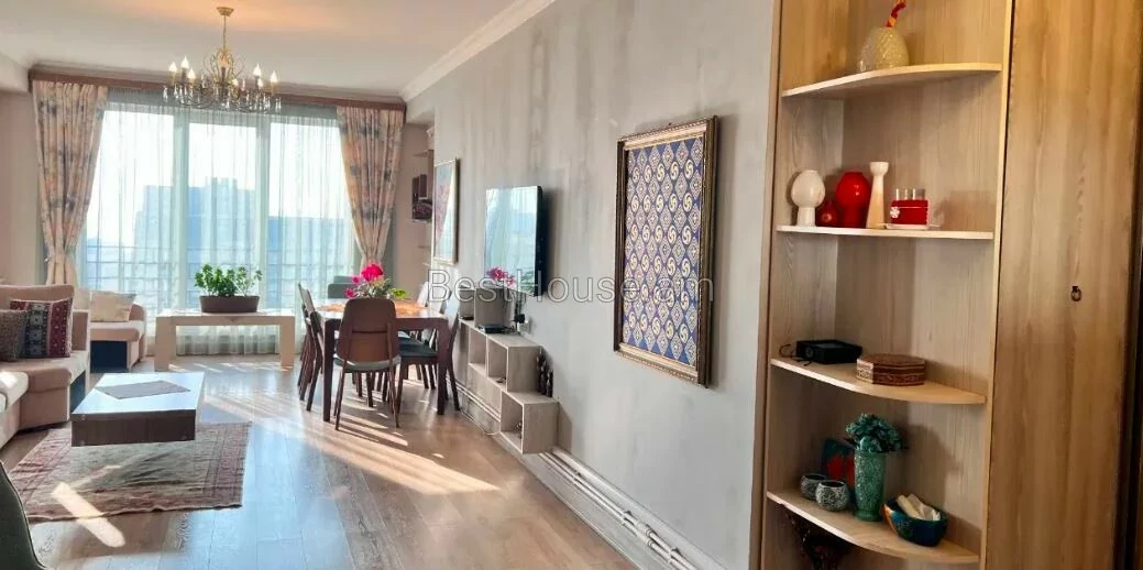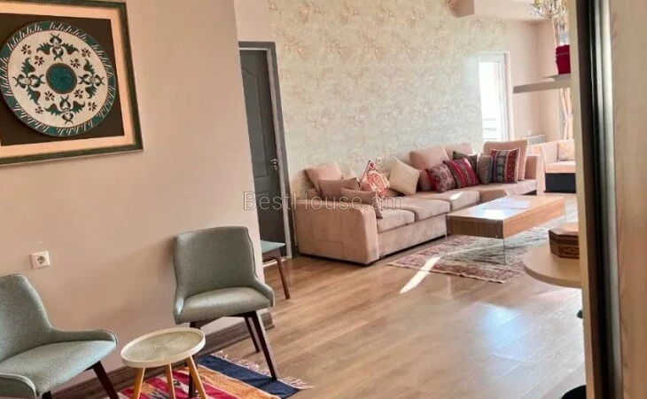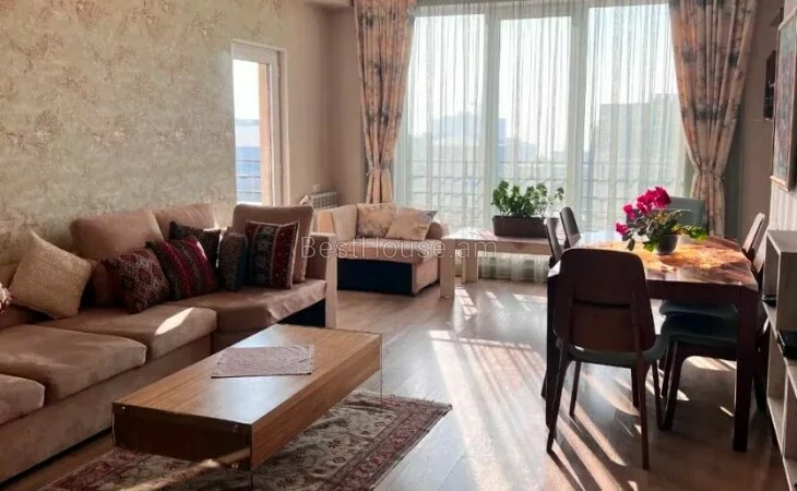 An apartment is for rent in a newly built, very good, clean, safe building on Paruyr Sevak Street. The apartment is renovated in a designer style, very warm and bright, with a beautiful sunrise and wonderful sunsets and a view of Mount Ararat. The apartment has 2 bedrooms, living room, kitchen and two bathrooms, it is spacious, the sun is in different rooms of the house from early morning to sunset, it has an open and quiet balcony. The apartment is equipped with the best equipment and everything. It is very comfortable and convenient for working from home. The building is very safe and family-friendly, has 24-hour security and a guard post, has a yard and playground, as well as parking spaces.