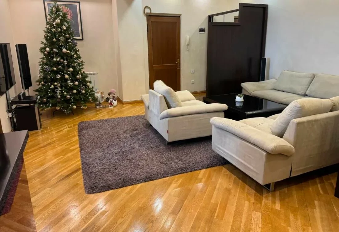 A bright, comfortable 3-room apartment is for sale, with all furniture and appliances. The price also includes a parking space for one car.
