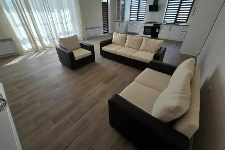 A two-story house is for rent. The kitchen and bathroom furniture are available. It can be furnished fully or partially if desired.