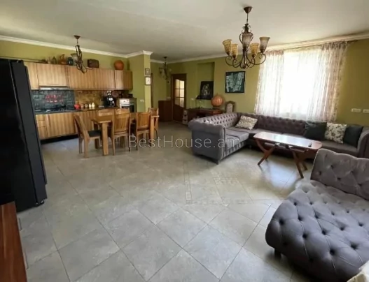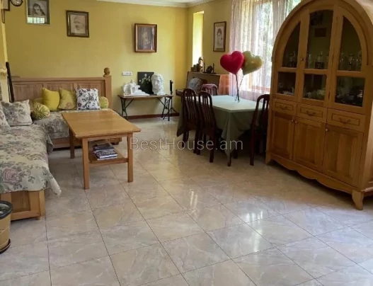 A three stored house is for sale on 387 square meters. The area is 300 square meters. The house is located on Proshyan street, near the Lovers' Park. It is fully repaired. The house has 6 bedrooms, 3 bathrooms, 1 kitchen, 2 open balconies, where beautiful view opens to the garden. It is being heated with gas boiler. The kitchen and toilets are tiled and equipped with the necessary sanitary ware. On the first floor of the house there is a swimming pool, a sauna and a lounge. There is a garage for 2 cars. A security system is installed in the house. It is also possible to exchange a flat in the center with a surcharge.