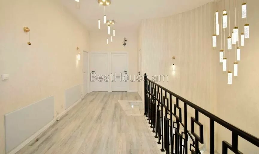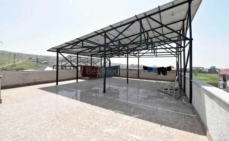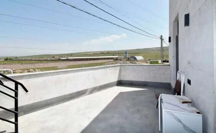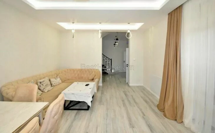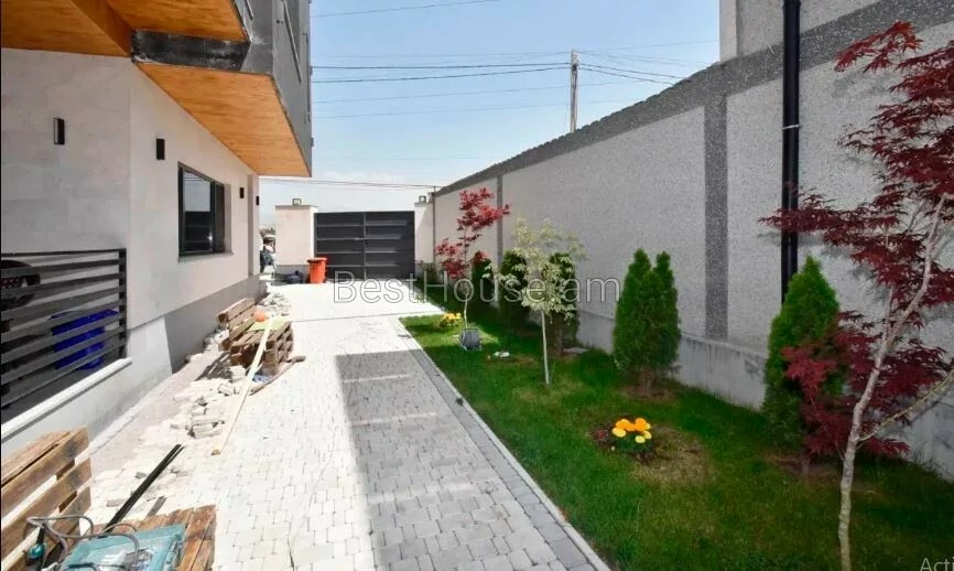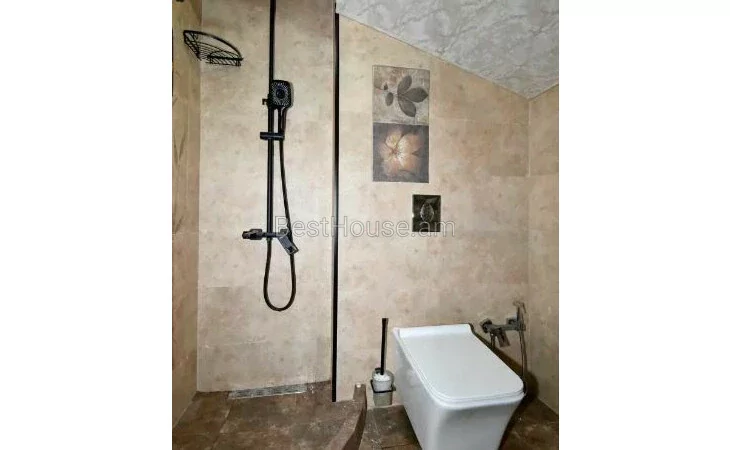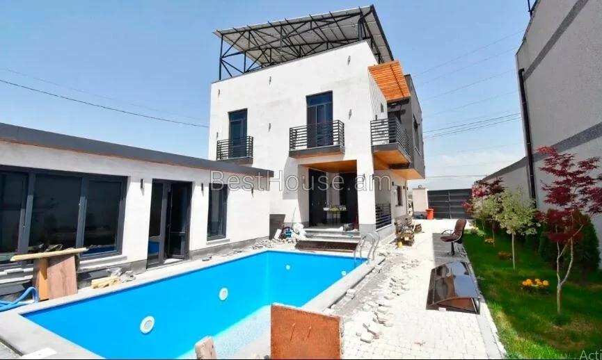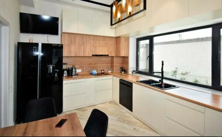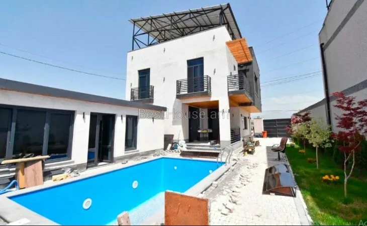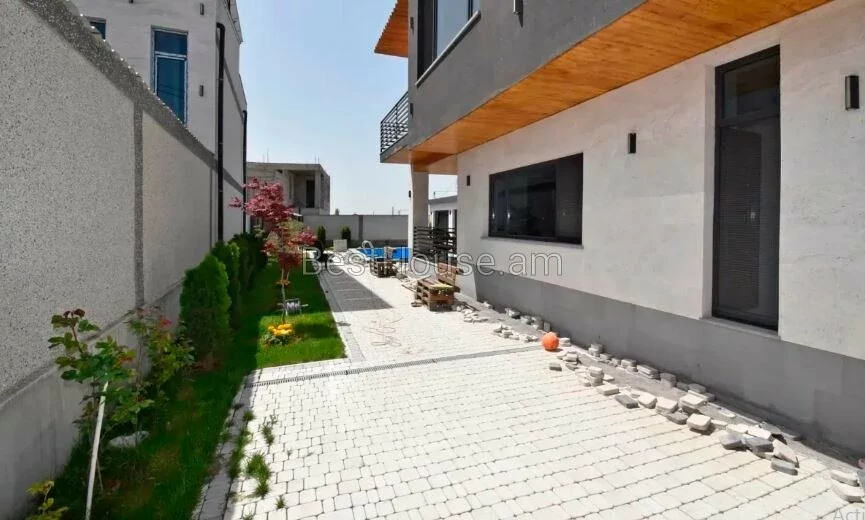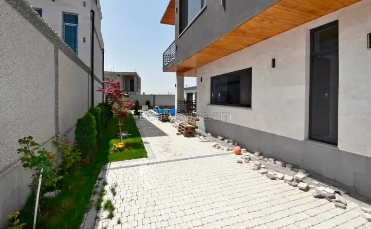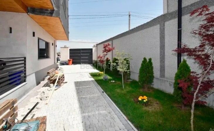 Two-story modern style private house for sale. The area of the house is 225 square meters. On the first floor: kitchen, living room, entrance hall, bathroom. Node. On the second floor: 4 bedrooms, 1 office, dressing room, 2 bathrooms. The roof is flat, used, tiled, covered. The house is equipped with a 15.4 kilowatt solar plant that provides 12 months of free electricity. Heating: Electric. During the renovation, high-quality and inexpensive building materials were used: natural marble, basalt travertine, etc. The house is built with Artik tuff in 2 layers, completely monolithic.
