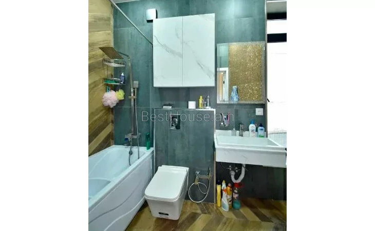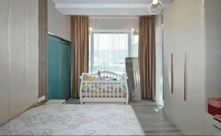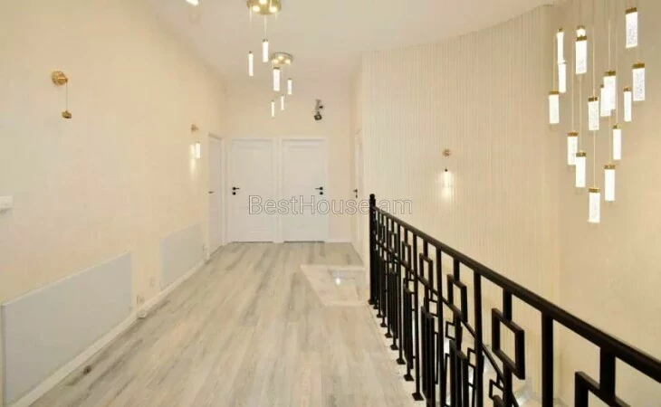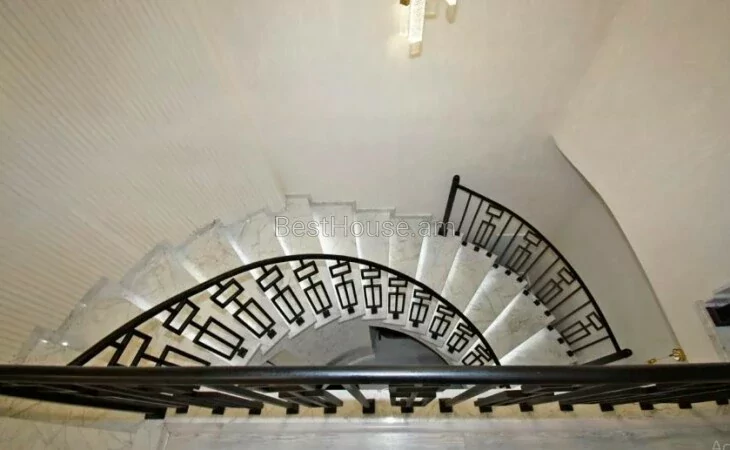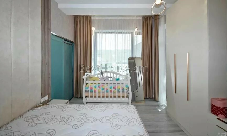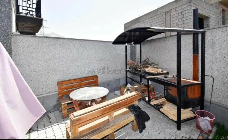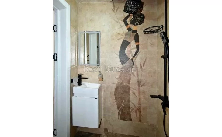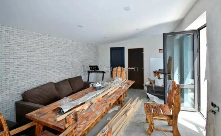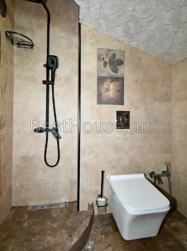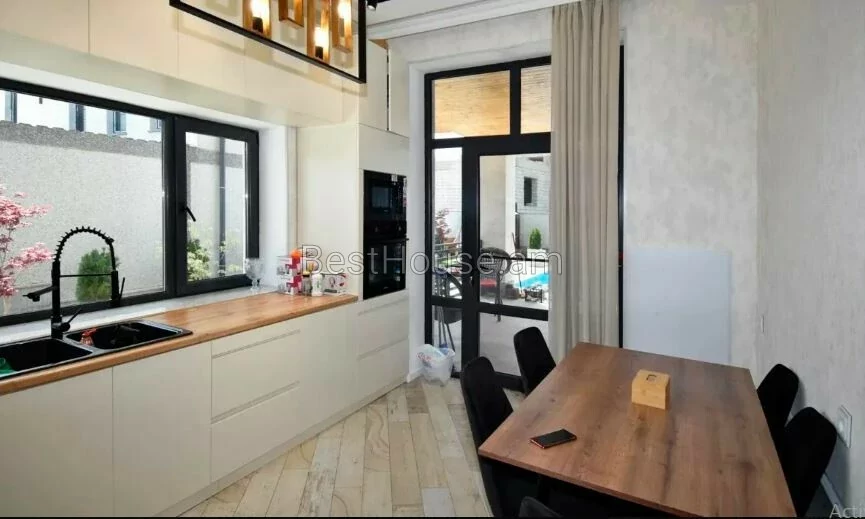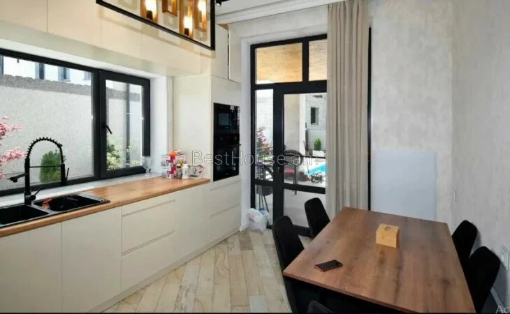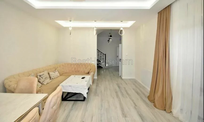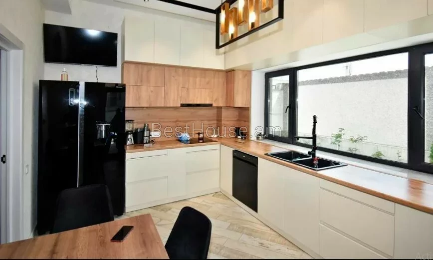 Two-story modern style private house for sale. The area of the house is 225 square meters. On the first floor: kitchen, living room, entrance hall, bathroom. Node. On the second floor: 4 bedrooms, 1 office, dressing room, 2 bathrooms. The roof is flat, used, tiled, covered. The house is equipped with a 15.4 kilowatt solar plant that provides 12 months of free electricity. Heating: Electric. During the renovation, high-quality and inexpensive building materials were used: natural marble, basalt travertine, etc. The house is built with Artik tuff in 2 layers, completely monolithic.