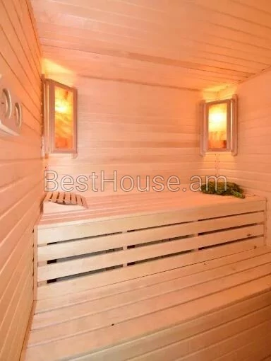 There is a 40 square meter closed pavilion with kitchen, living room, bathroom and sauna.