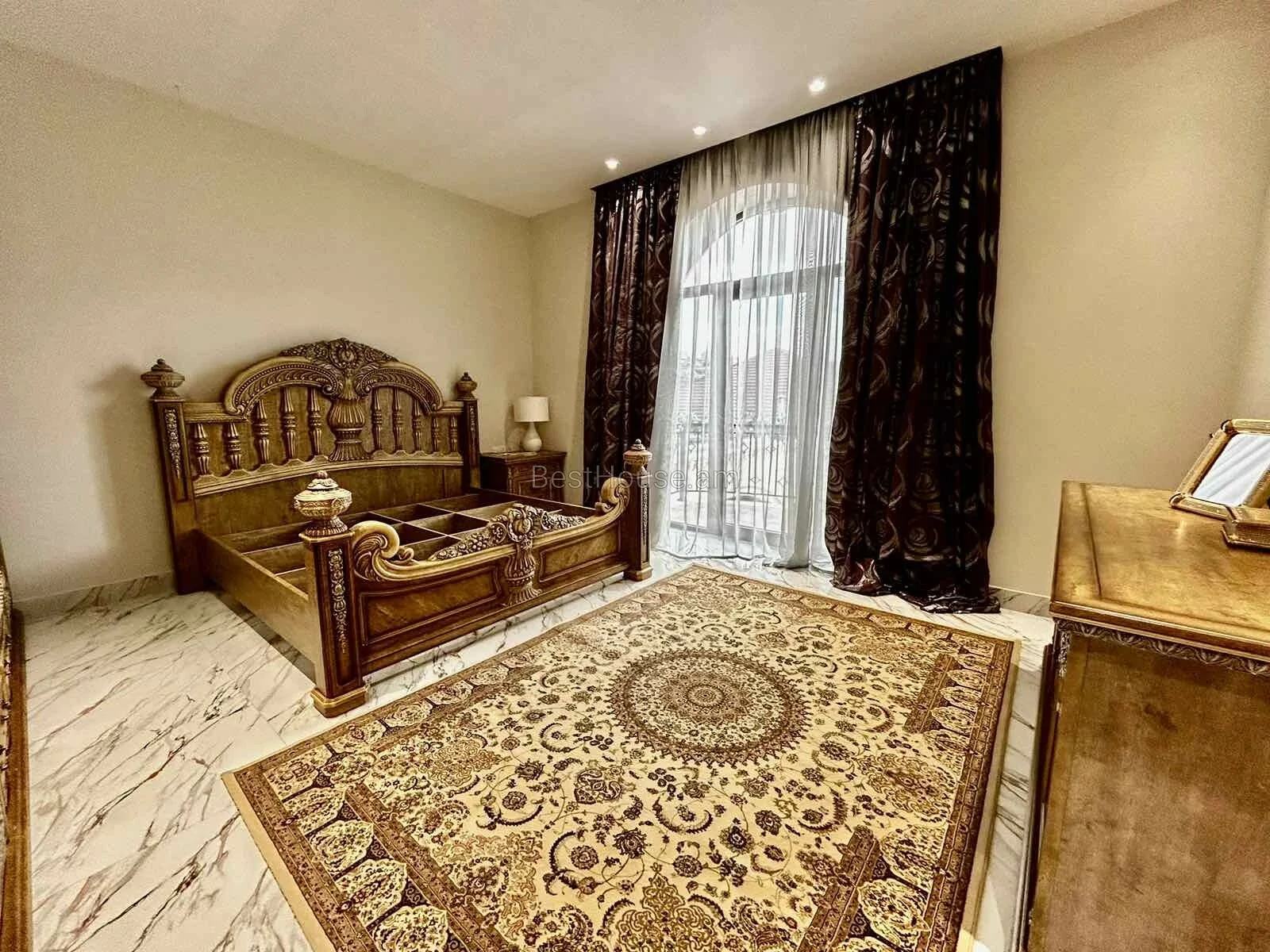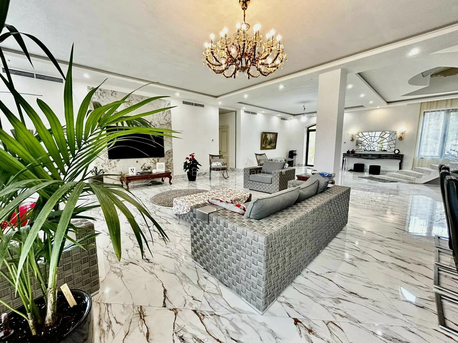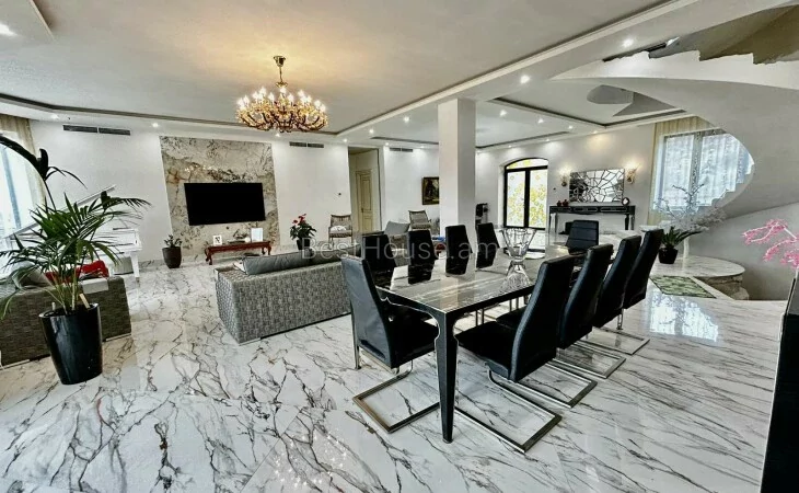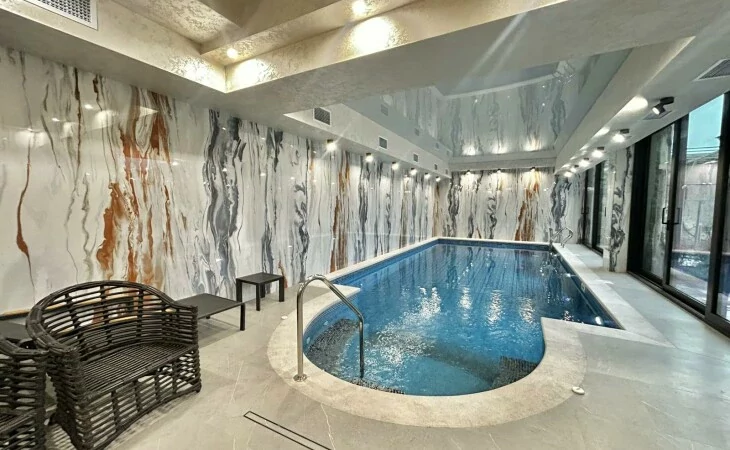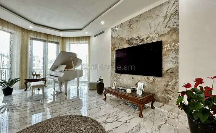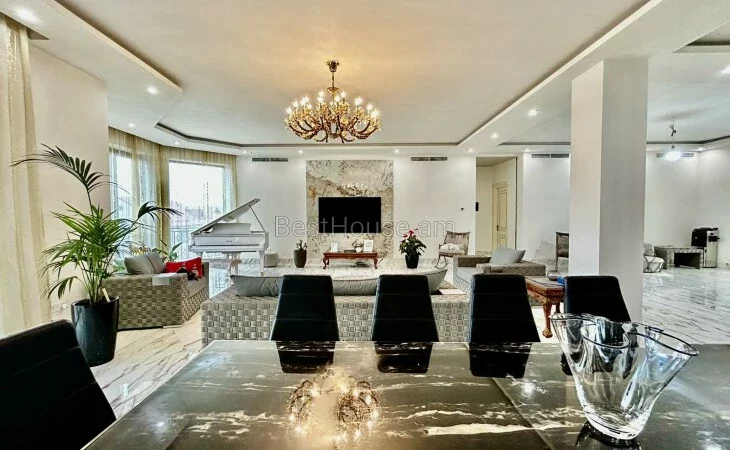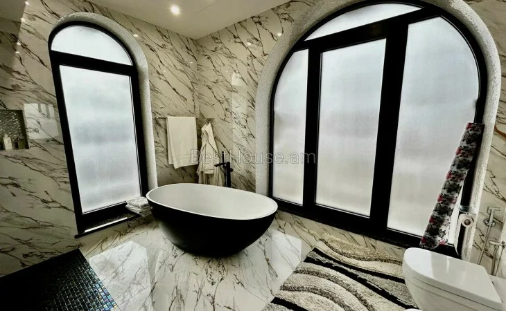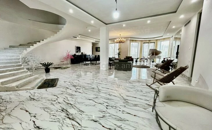 A luxurious 4-storey private house is for sale, renovated with designer, distinctive and unique solutions. All property and equipment and building material are brought from Europe. 1500 sq.m. The surface of the house is 1200 sq.m. of land. Currently, the 2nd floor of the private house is renovated, the other part is under renovation. Eghegnadzor and Vedi travertine was used for the facade of the mansion, and the lower part is granite. Sculptures representing Greek culture, laurel leaves, and a sculpture symbolizing the Goddess Venus were used on the facade covering. Presgranite, onyx natural stones, natural helix, oak and popok wood furniture were used in the renovation of the house. The mansion has an indoor swimming pool, a sauna, a fireplace, a summer kitchen, a fairy garden. The mansion itself is very distinctive and unrepeatable and awaits its client. Both sale and lease options are available. Call me if you have additional questions.