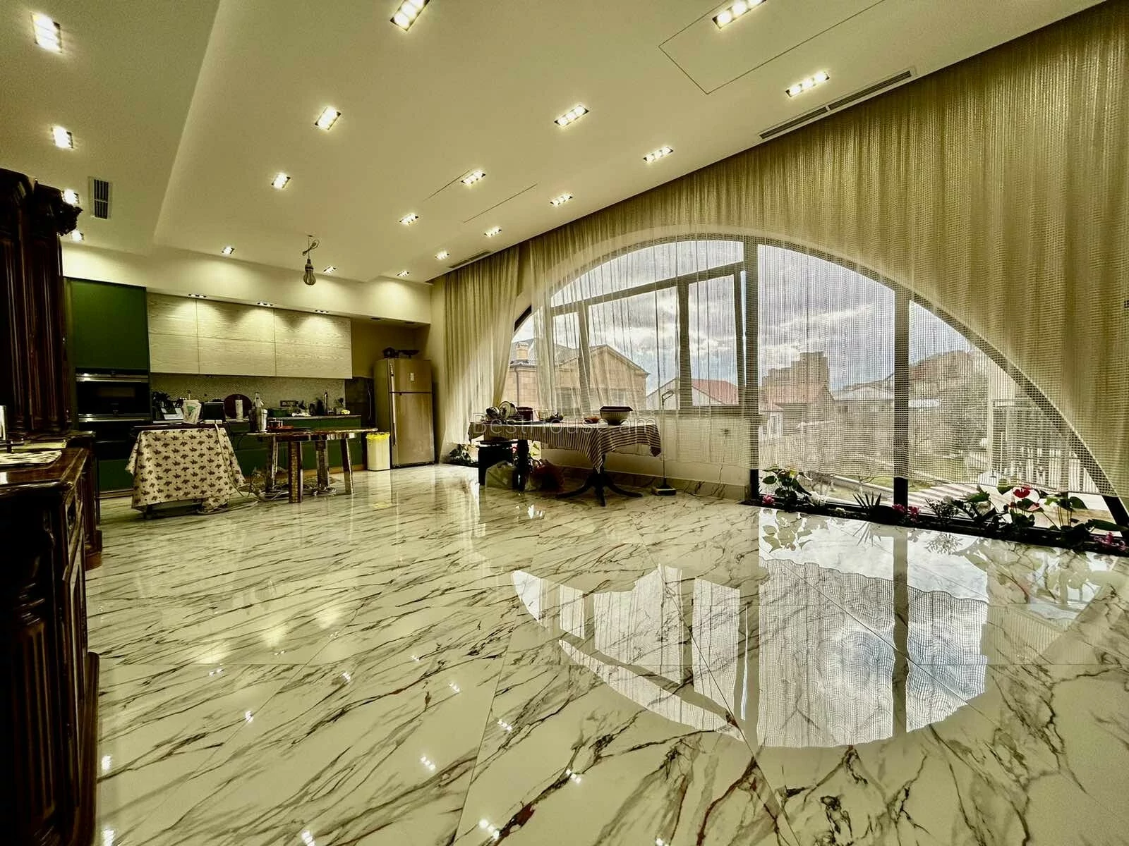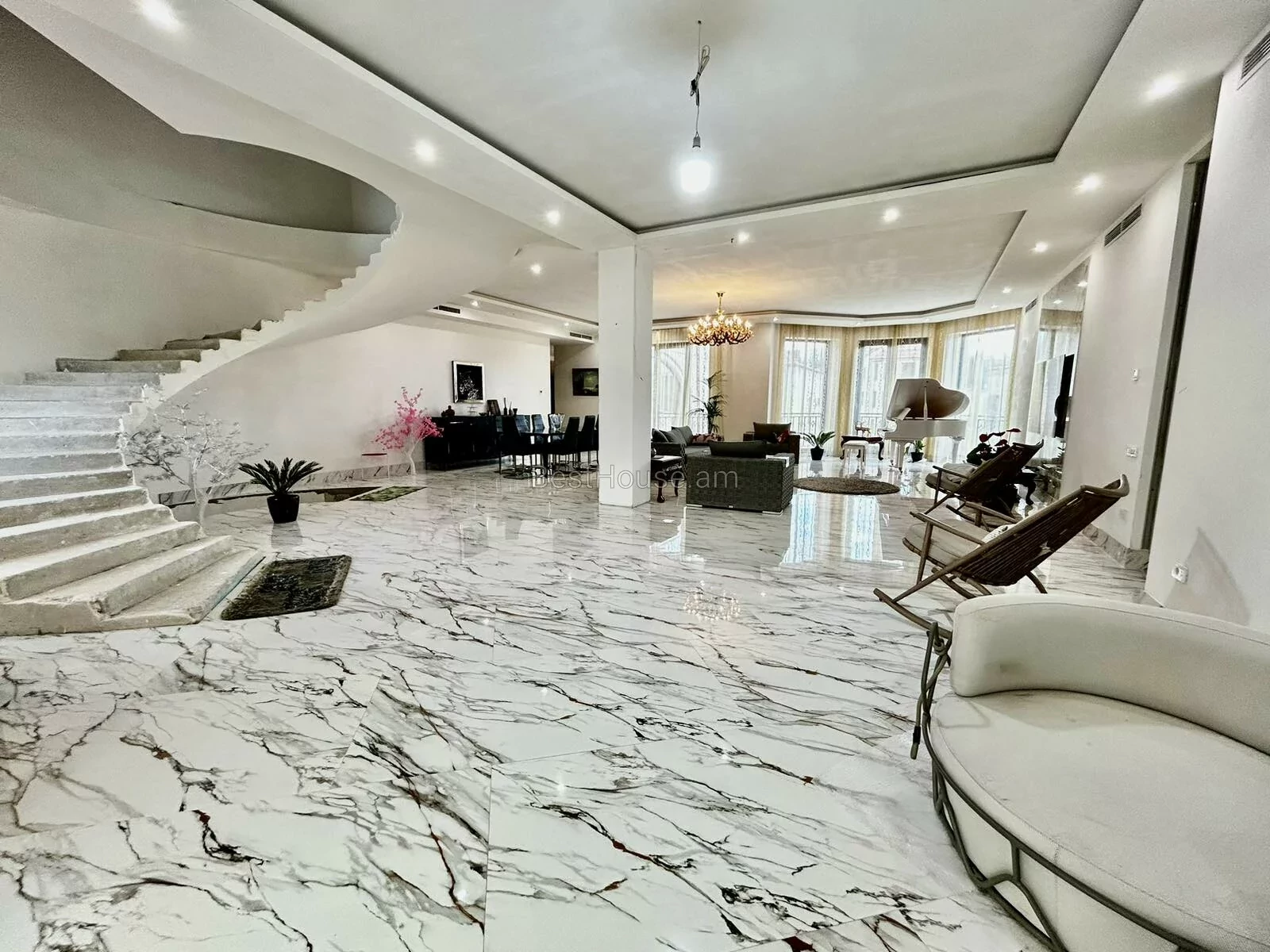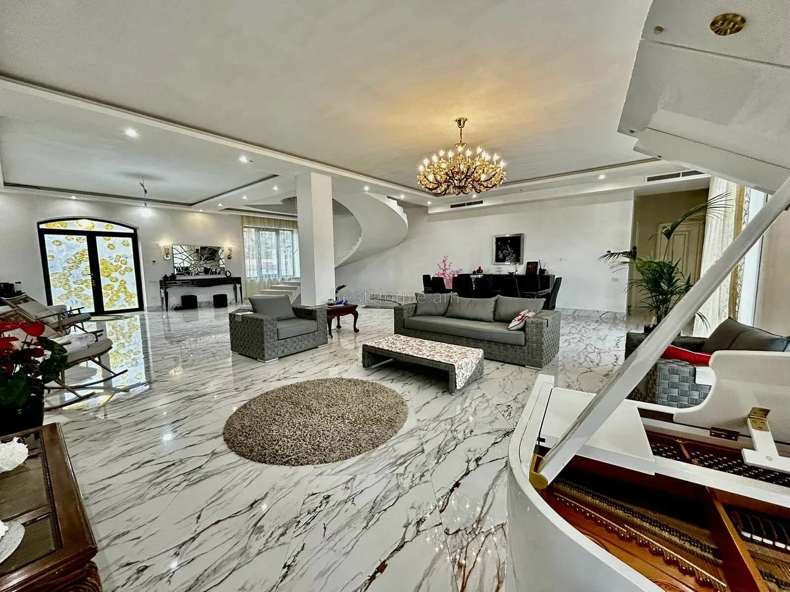 A luxurious 4-storey private house is for sale, renovated with designer, distinctive and unique solutions. All property and equipment and building material are brought from Europe. 1500 sq.m. The surface of the house is 1200 sq.m. of land. Currently, the 2nd floor of the private house is renovated, the other part is under renovation. Eghegnadzor and Vedi travertine was used for the facade of the mansion, and the lower part is granite. Sculptures representing Greek culture, laurel leaves, and a sculpture symbolizing the Goddess Venus were used on the facade covering. Presgranite, onyx natural stones, natural helix, oak and popok wood furniture were used in the renovation of the house. The mansion has an indoor swimming pool, a sauna, a fireplace, a summer kitchen, a fairy garden. The mansion itself is very distinctive and unrepeatable and awaits its client. Both sale and lease options are available. Call me if you have additional questions.