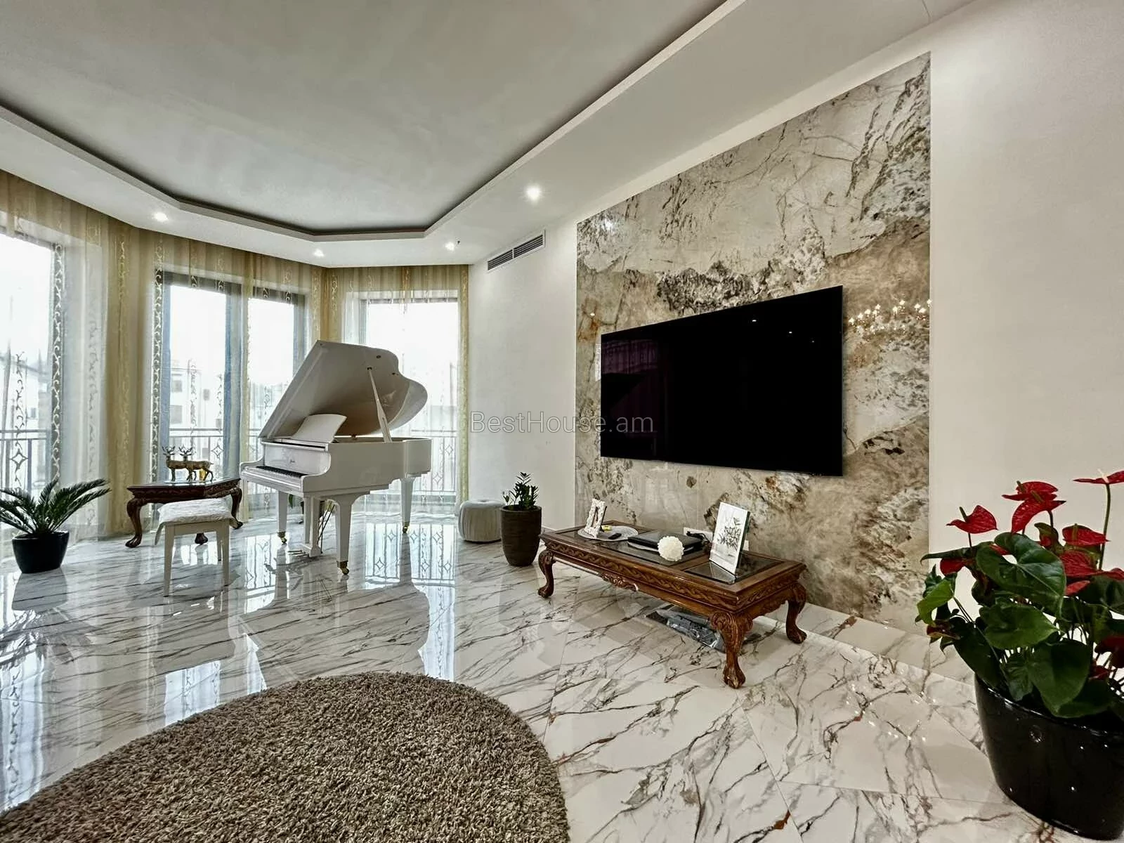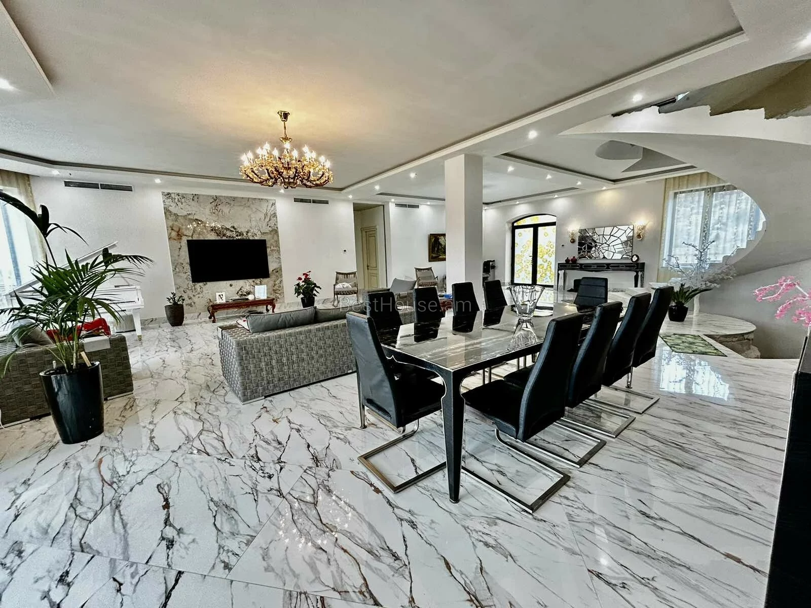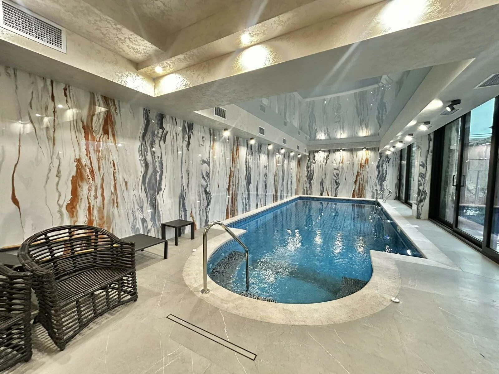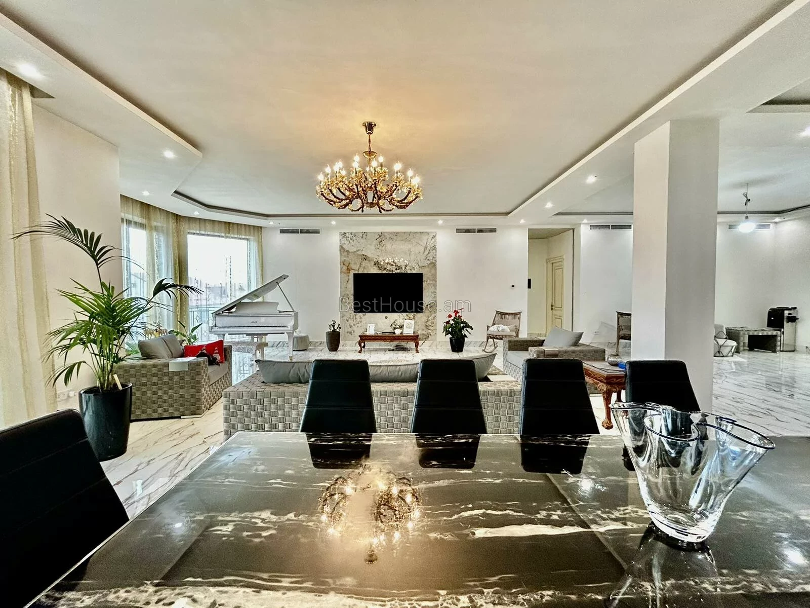 A luxurious 4-storey private house is for sale, renovated with designer, distinctive and unique solutions. All property and equipment and building material are brought from Europe. 1500 sq.m. The surface of the house is 1200 sq.m. of land. Currently, the 2nd floor of the private house is renovated, the other part is under renovation. Eghegnadzor and Vedi travertine was used for the facade of the mansion, and the lower part is granite. Sculptures representing Greek culture, laurel leaves, and a sculpture symbolizing the Goddess Venus were used on the facade covering. Presgranite, onyx natural stones, natural helix, oak and popok wood furniture were used in the renovation of the house. The mansion has an indoor swimming pool, a sauna, a fireplace, a summer kitchen, a fairy garden. The mansion itself is very distinctive and unrepeatable and awaits its client. Both sale and lease options are available. Call me if you have additional questions.