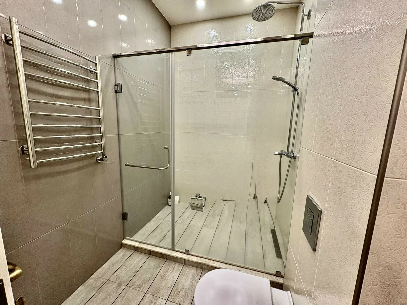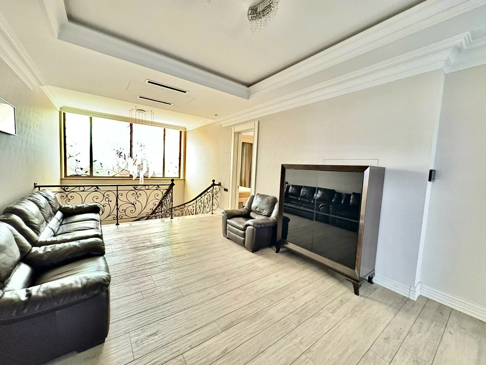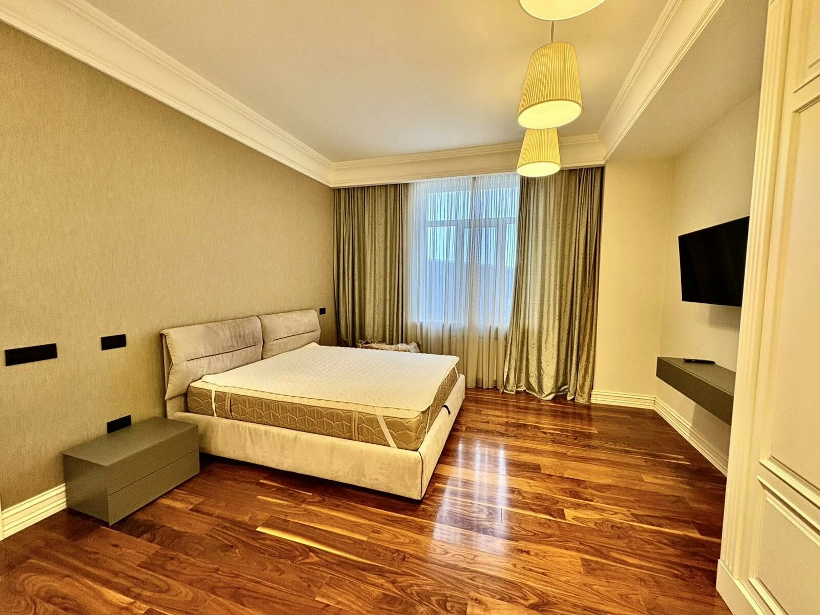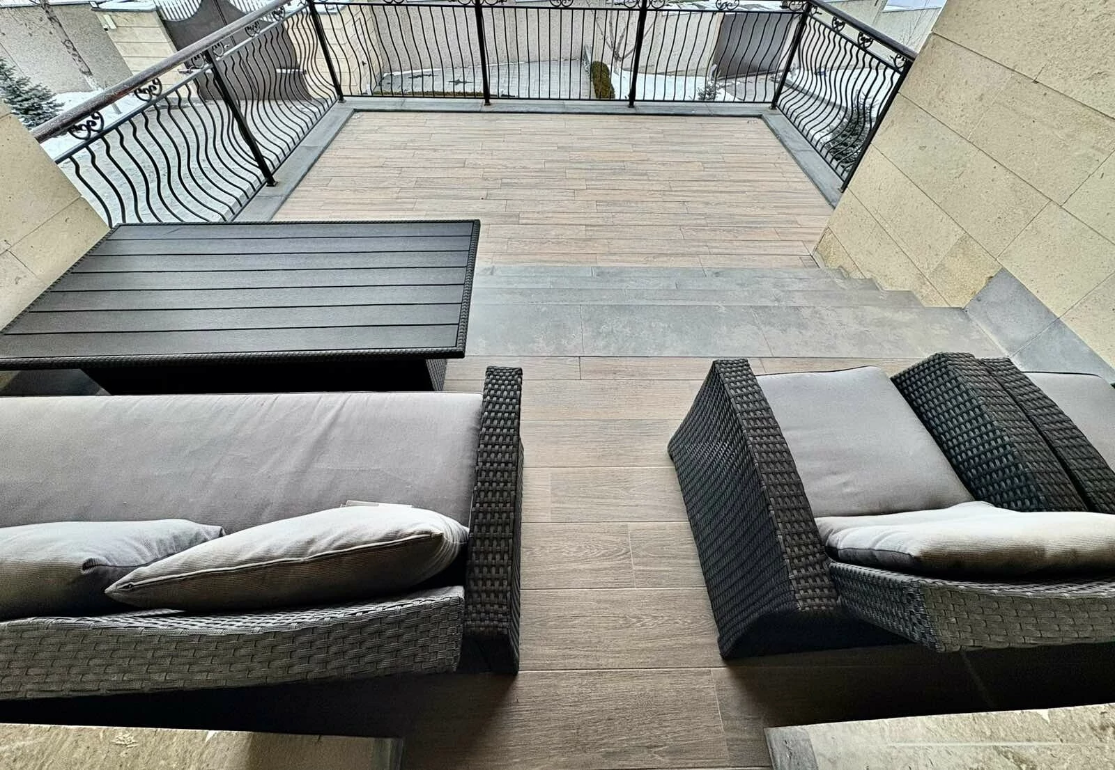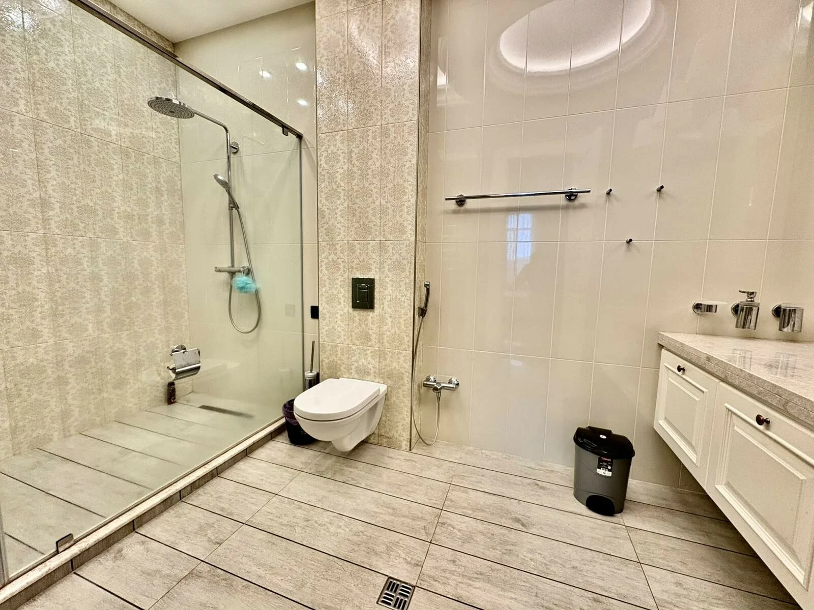 It is a two-story newly built, monolithic house, which consists of 8 rooms, each with a separate bathroom, kitchen, open and closed balconies. The house has a garage, basement, and a swimming pool area.