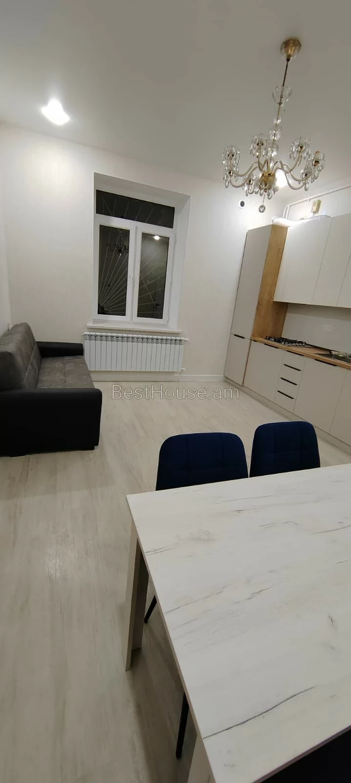 A 3-room renovated apartment, equipped with utilities, is for rent on Aghbyur Serob street.