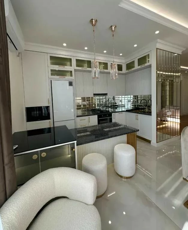 A luxurious modern 4-room apartment is for rent in a newly built building on Azatutyan Avenue, the 2-bathroom apartment is bright, equipped with quality furniture and appliances, and there is also a closed parking space.