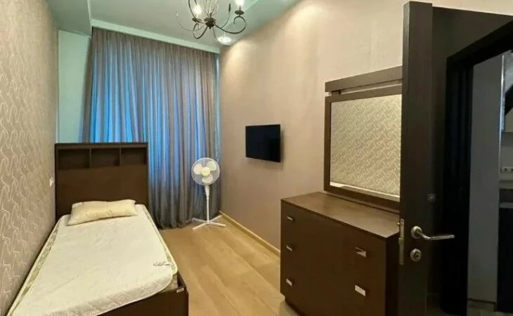 A comfortable 3-room apartment is offered for long-term rent in a newly built building on Baghramyan Avenue. The apartment is fully renovated and equipped with all necessary amenities.