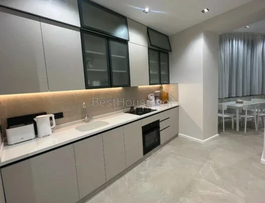 A beautiful, bright 3-room apartment is for rent in a newly built building on Adontsi Street, 100 square meters, 2 bathrooms. The apartment is equipped with the necessary furniture and appliances.