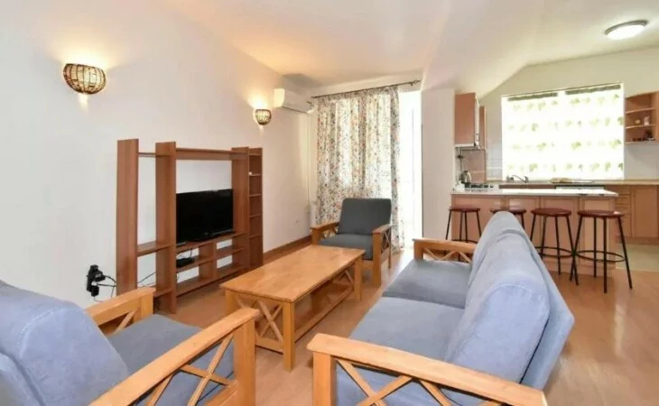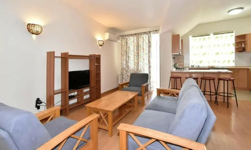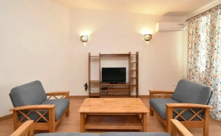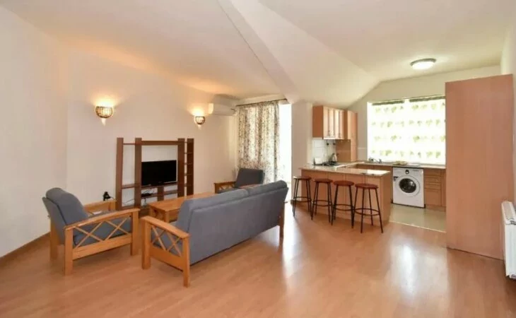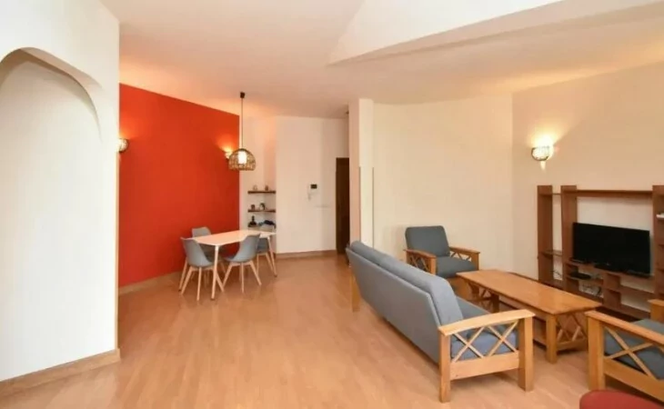 The apartment is located next to the metro. It is also very close to the SAS supermarket. The apartment is very bright and warm. It has 2 bedrooms and two bathrooms.